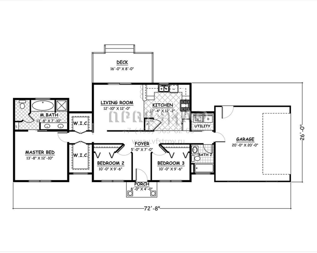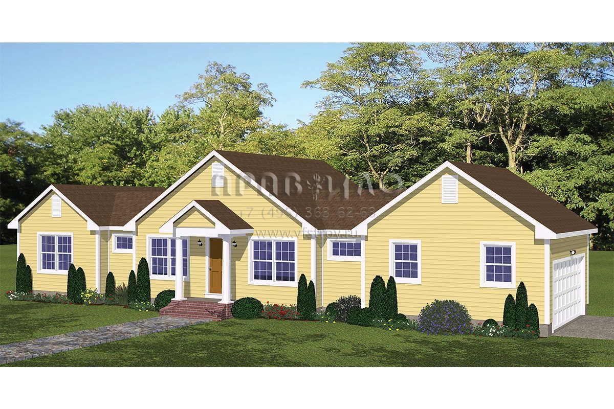 Проект одноэтажного дома с гаражом на две машины в стиле Ранчо S5-111 (526-00028)