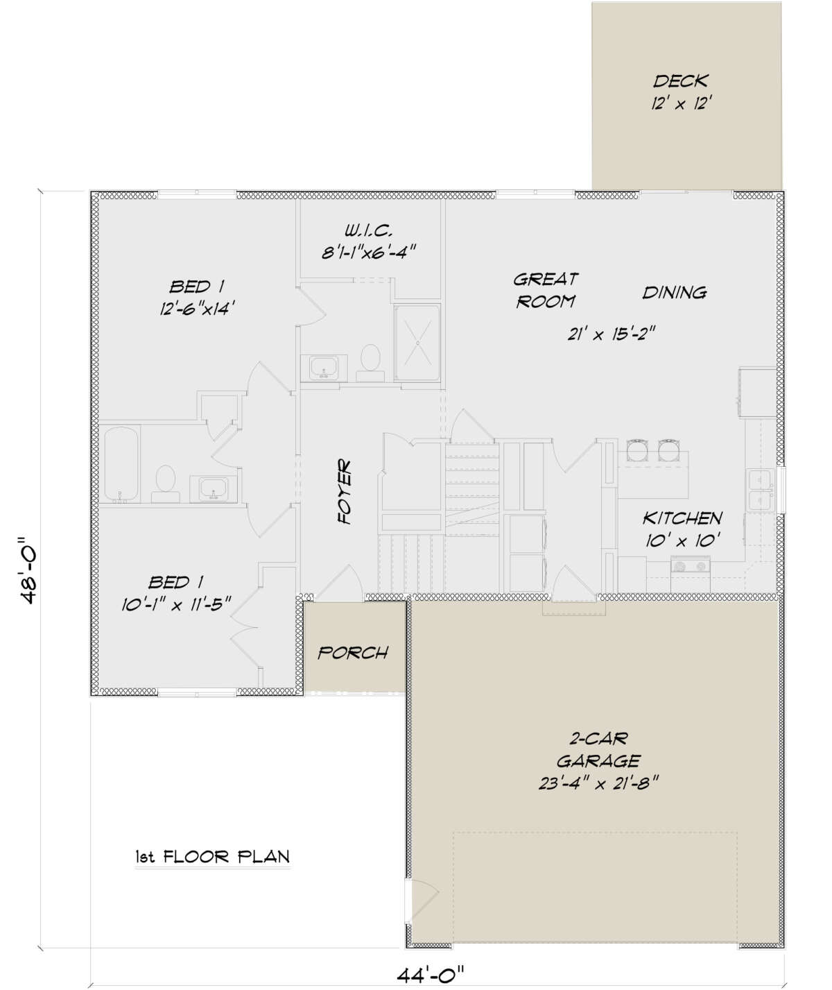 Проект одноэтажного дома с гаражом на две машины в стиле Ранчо S5-111 (5678-00017)