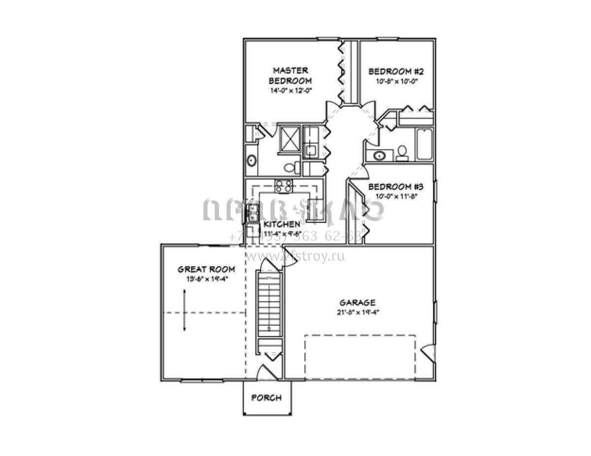 Проект одноэтажного дома с гаражом на две машины в стиле Ранчо S5-111 (849-00048)