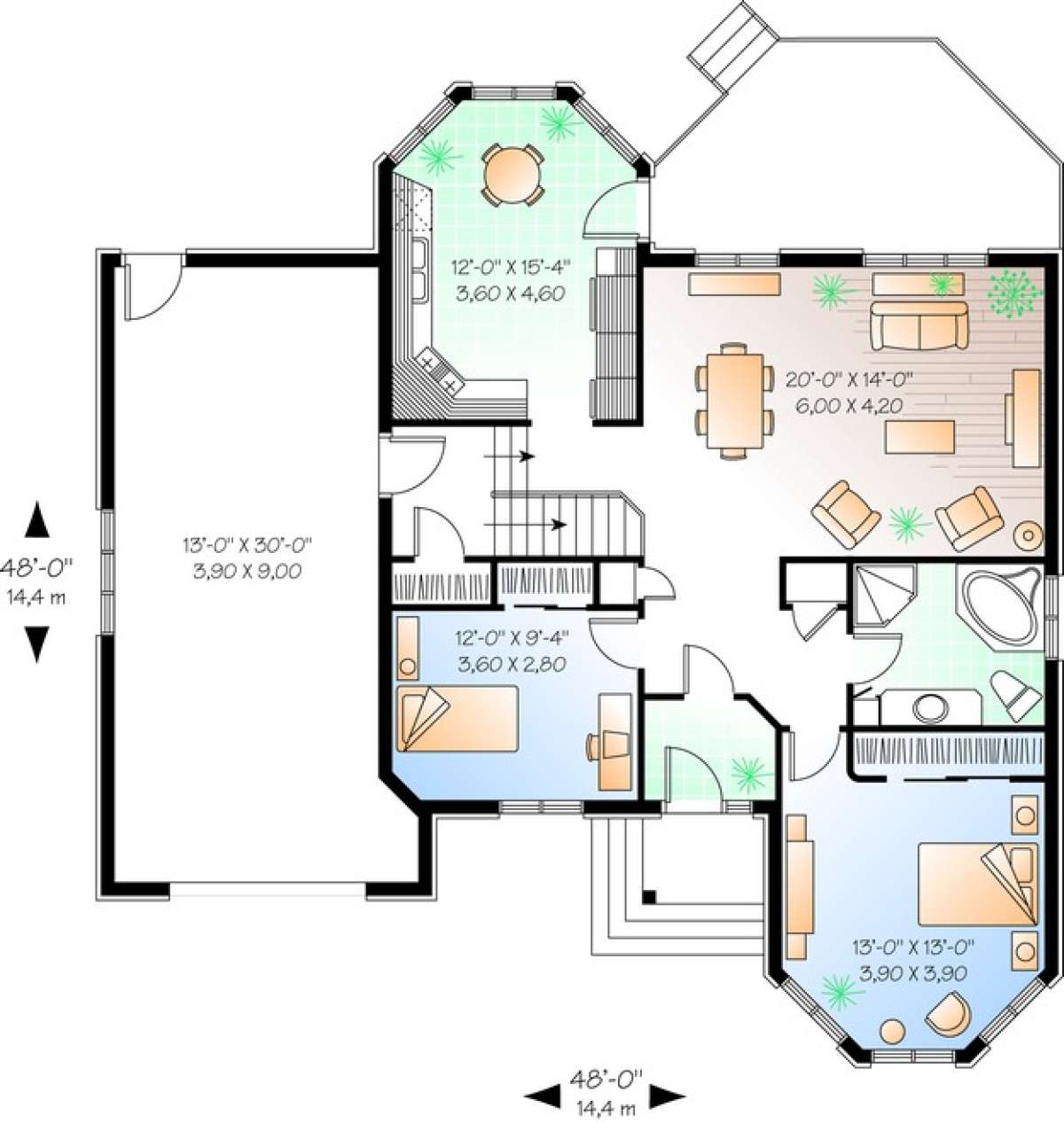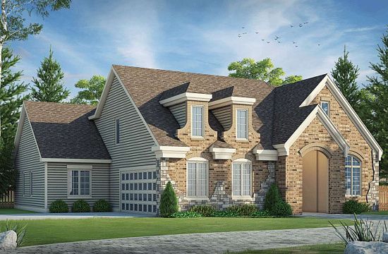 Проект одноэтажного дома с гаражом на одну машину в английском стиле S5-112 (034-00632)
