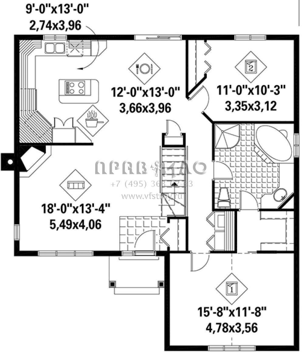 S5-113 (6146-00285) Это иностранный проект, для которого требуется адаптация под нормы, действующие в Российской Федерации. Вы видите проект дома в стиле Ранчо. В этом доме сочетаются черты сельской постройки и аскетичность лофта. Внутри жильцы смогут проводить время с максимальным комфортом. Обратим внимание, что сейчас на планировках все размеры представлены в футах. Для перевода в метры вам необходимо значение в футах умножить на 0,3048.