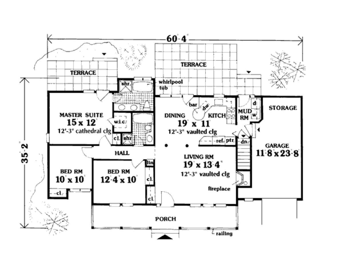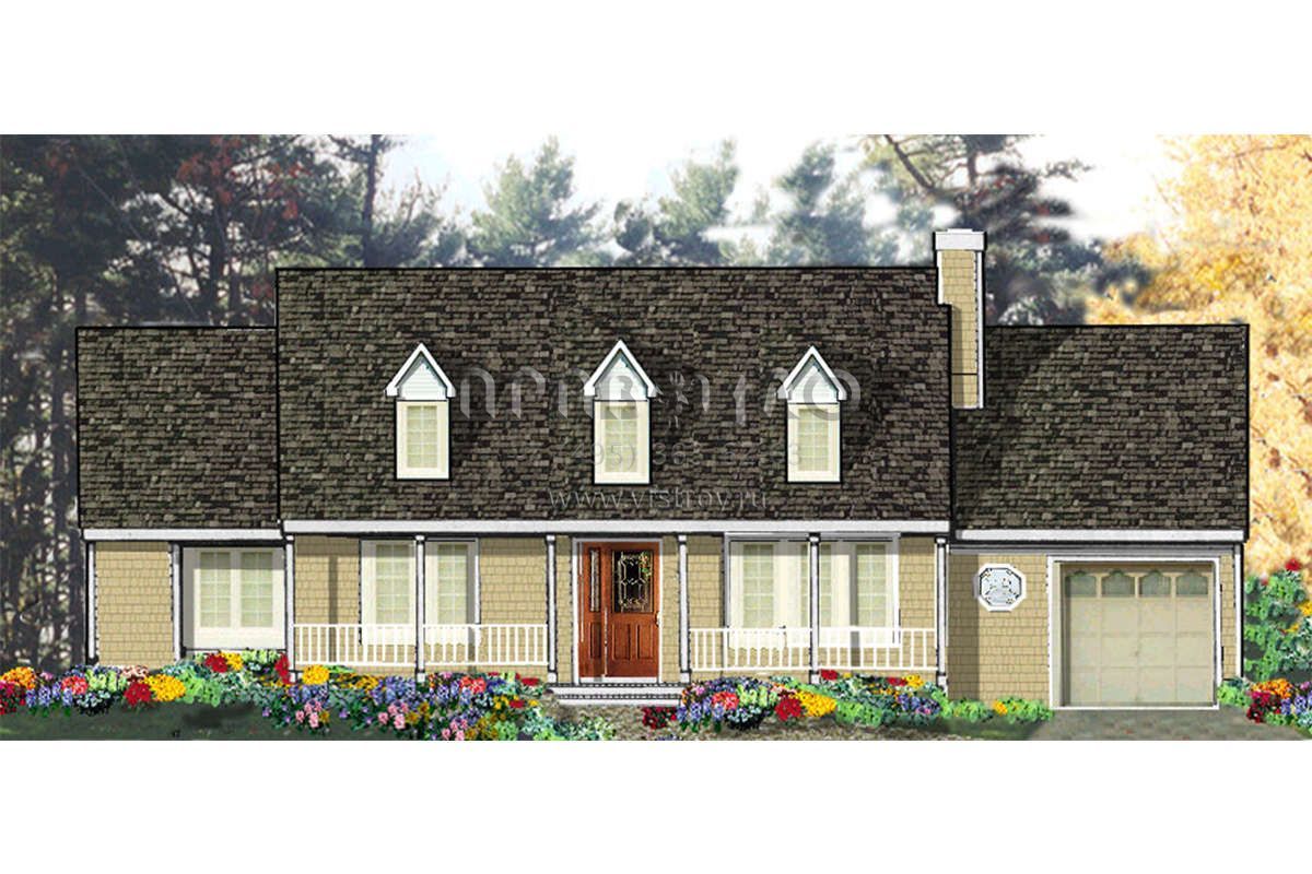 Проект одноэтажного дома с гаражом на одну машину в стиле Ранчо S5-114 (033-00009)