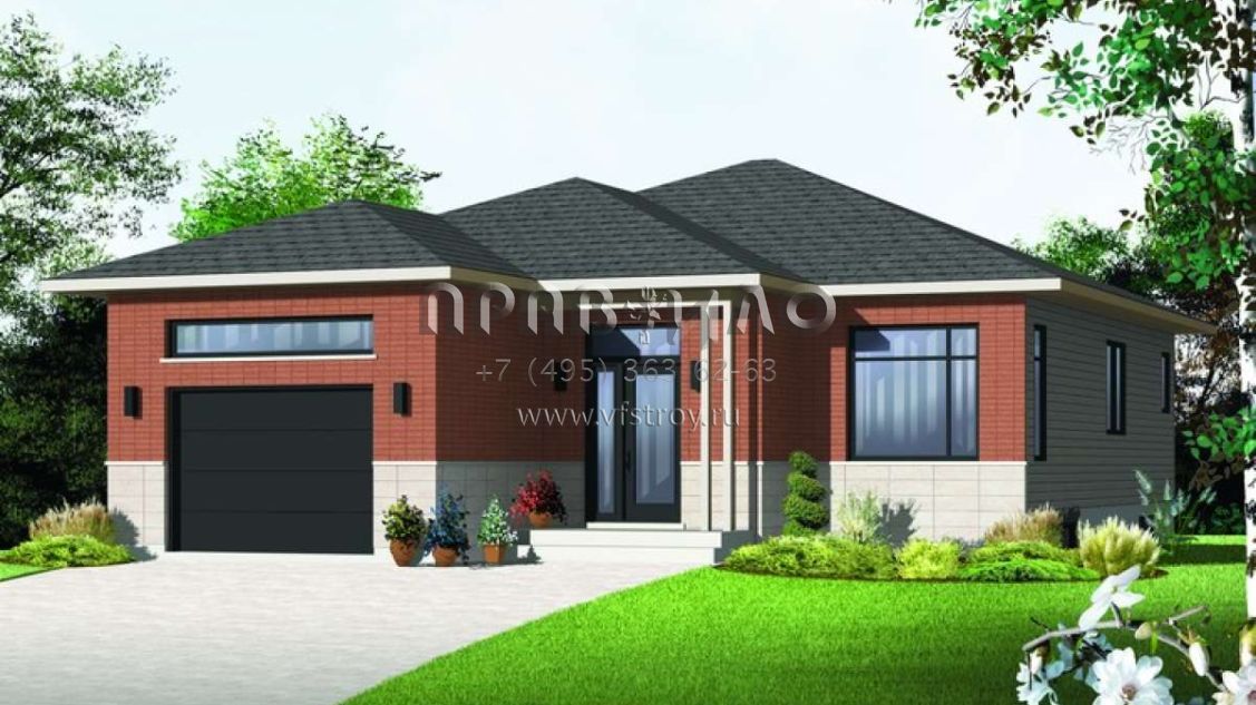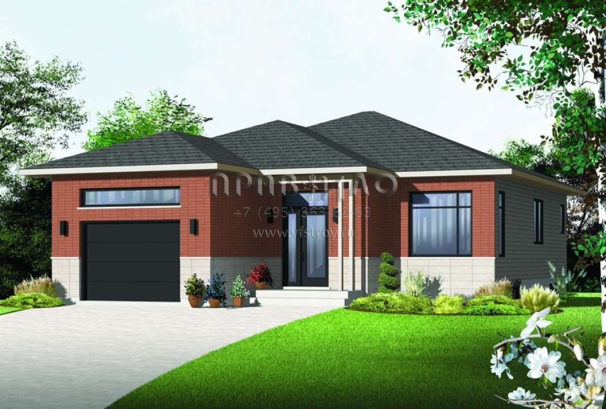 Проект одноэтажного дома с гаражом на одну машину в современном стиле S5-114 (034-01059)
