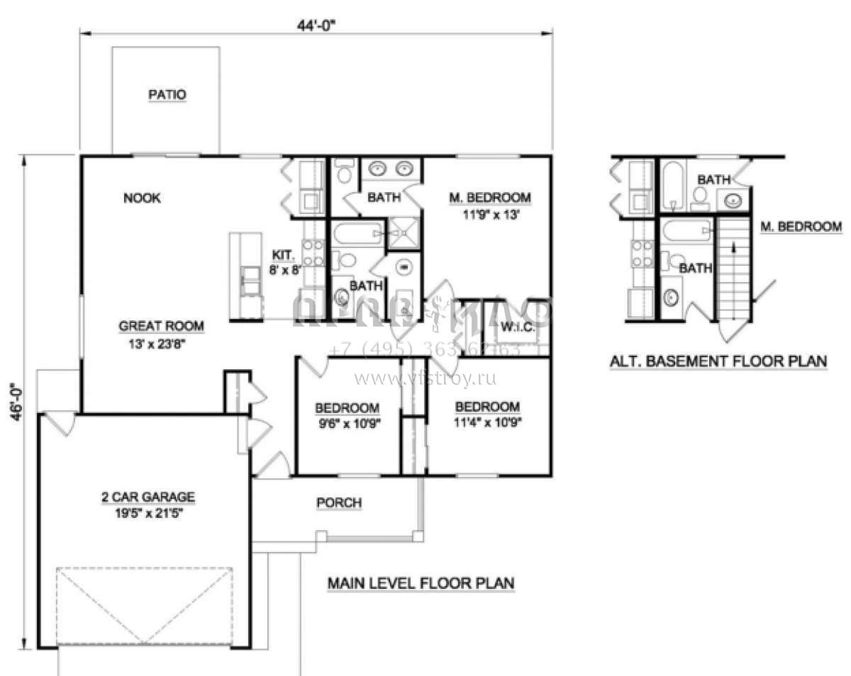 Проект одноэтажного дома с гаражом на две машины в стиле Ранчо S5-114 (340-00005)