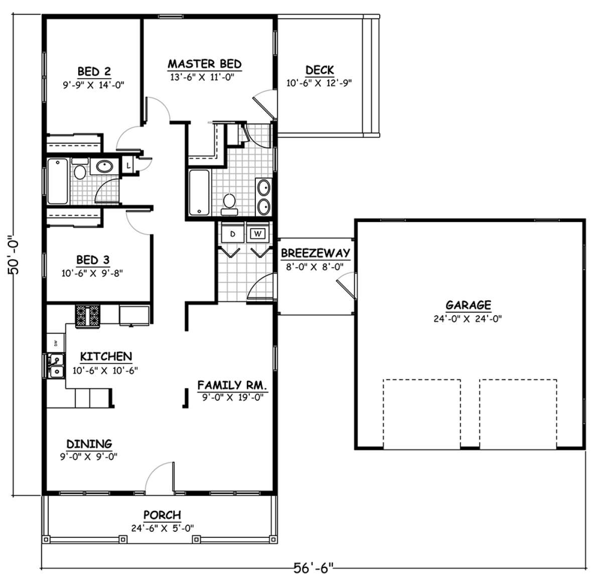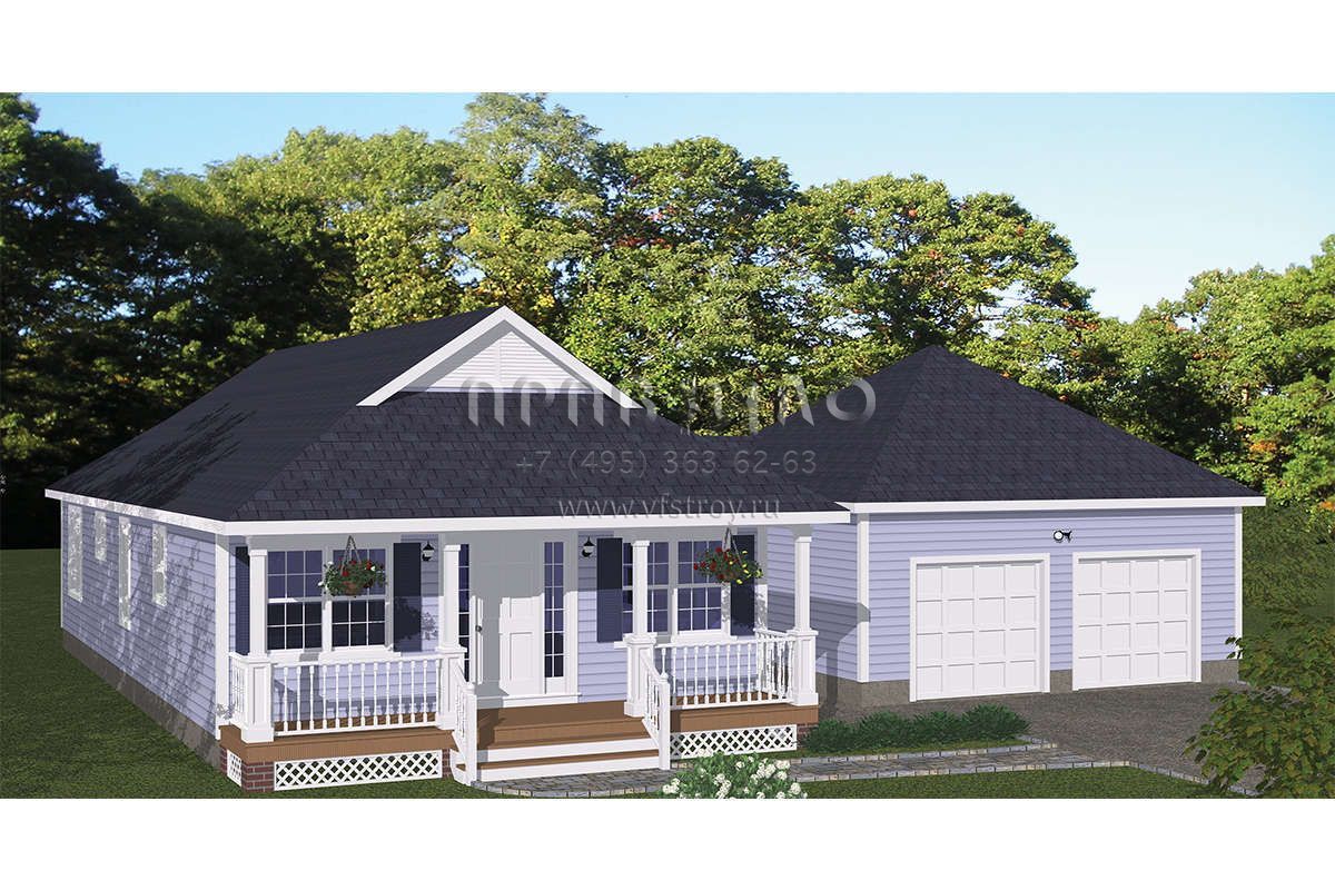 Проект одноэтажного дома с гаражом на две машины в стиле Ранчо S5-114 (526-00075)