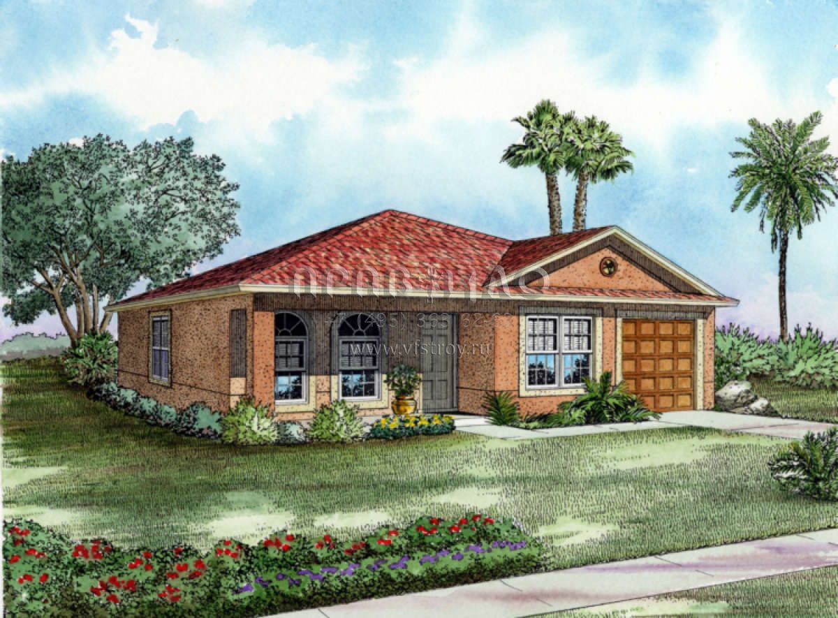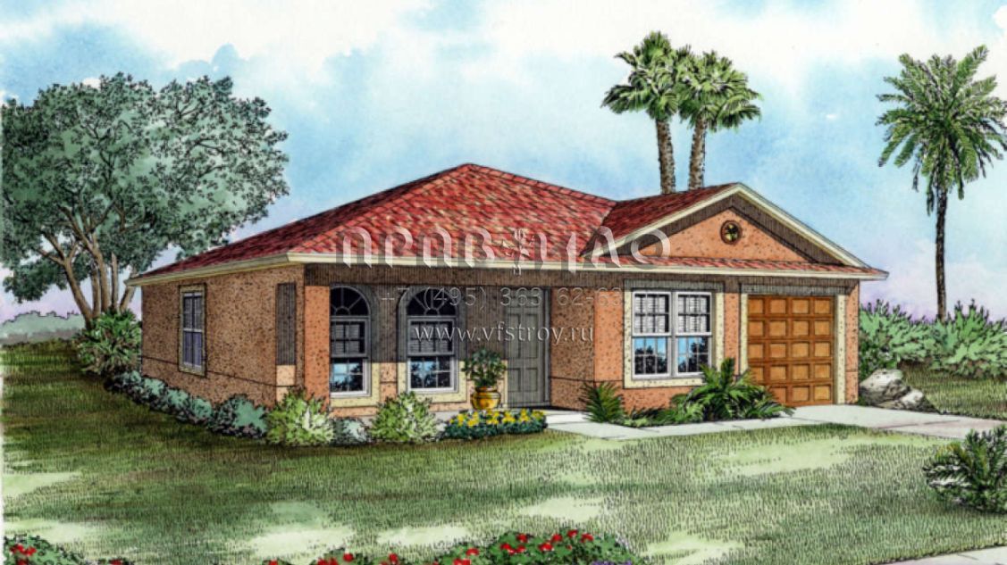 Проект одноэтажного дома с гаражом на одну машину в прибрежном стиле S5-115 (168-00002)