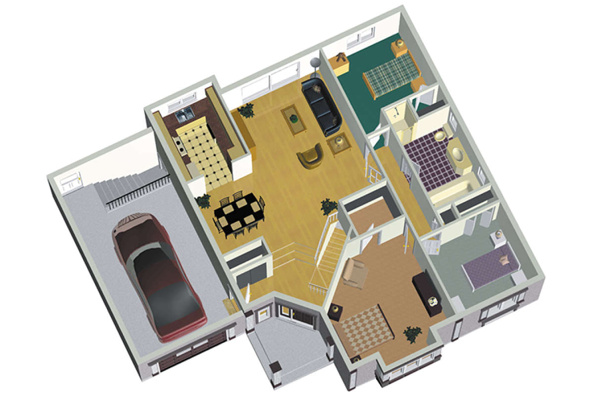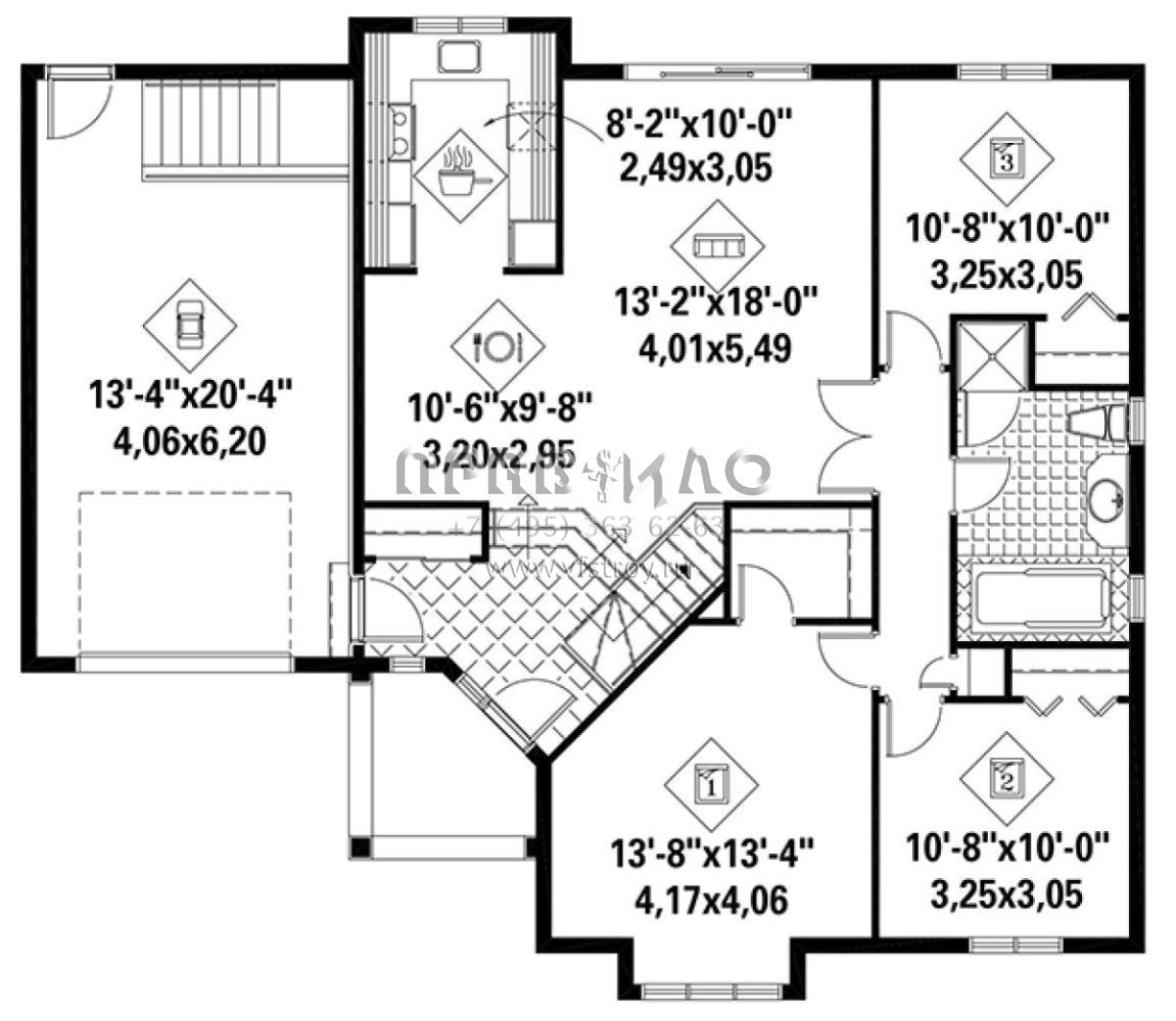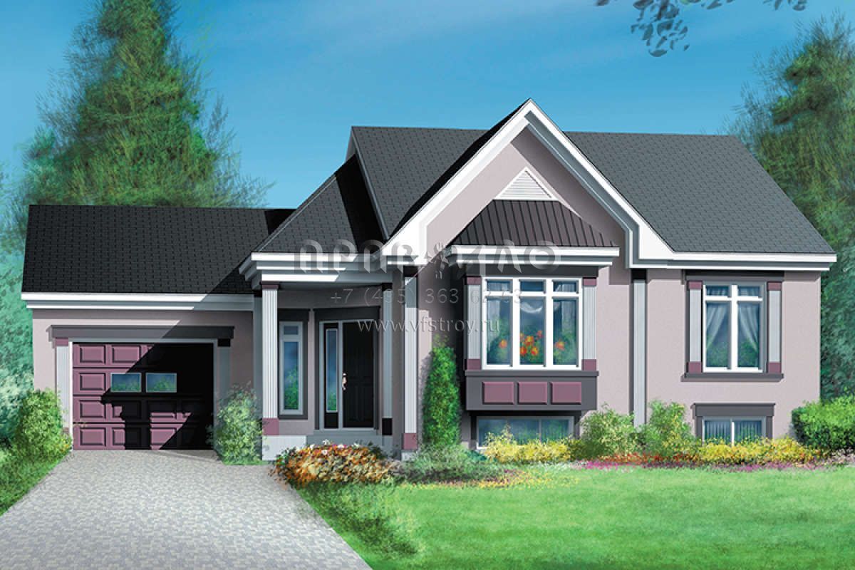 Проект одноэтажного дома с гаражом на одну машину в стиле Ранчо S5-115 (6146-00295)