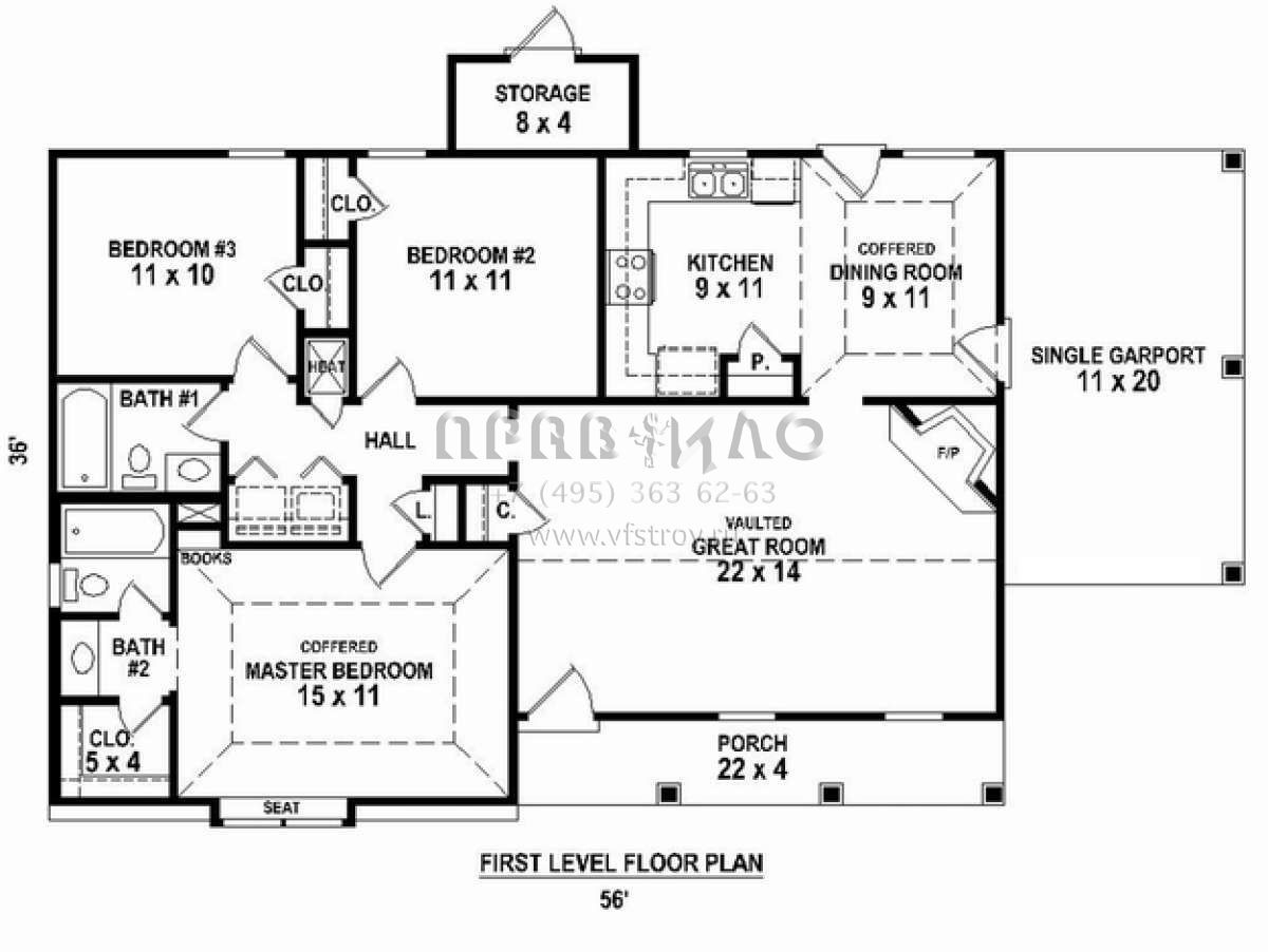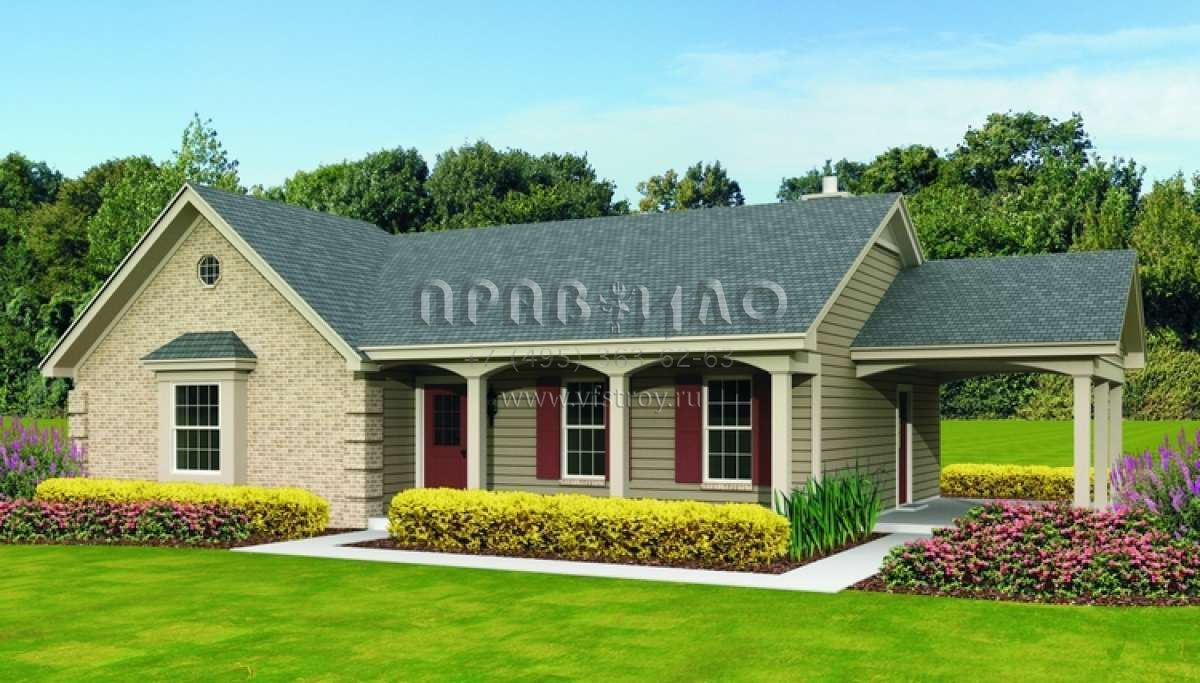 Проект одноэтажного дома с гаражом на одну машину в стиле Ранчо S5-116 (053-02584)
