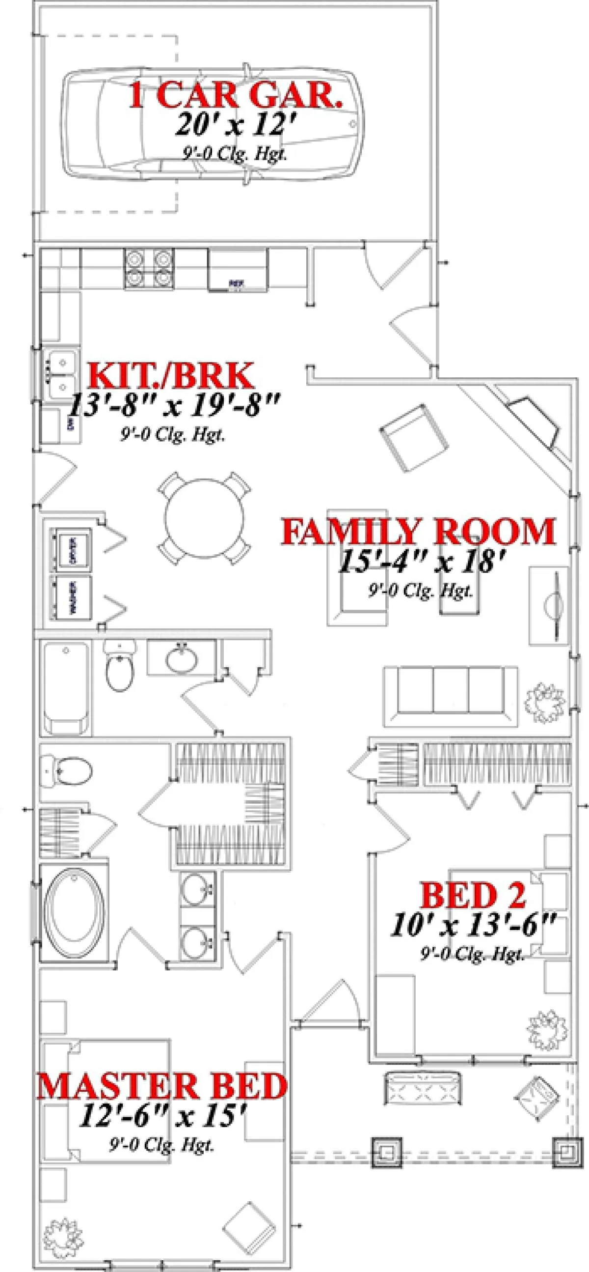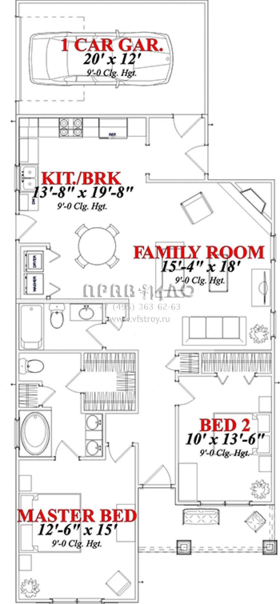 Проект одноэтажного дома с гаражом на одну машину в американском стиле S5-116 (1070-00157)