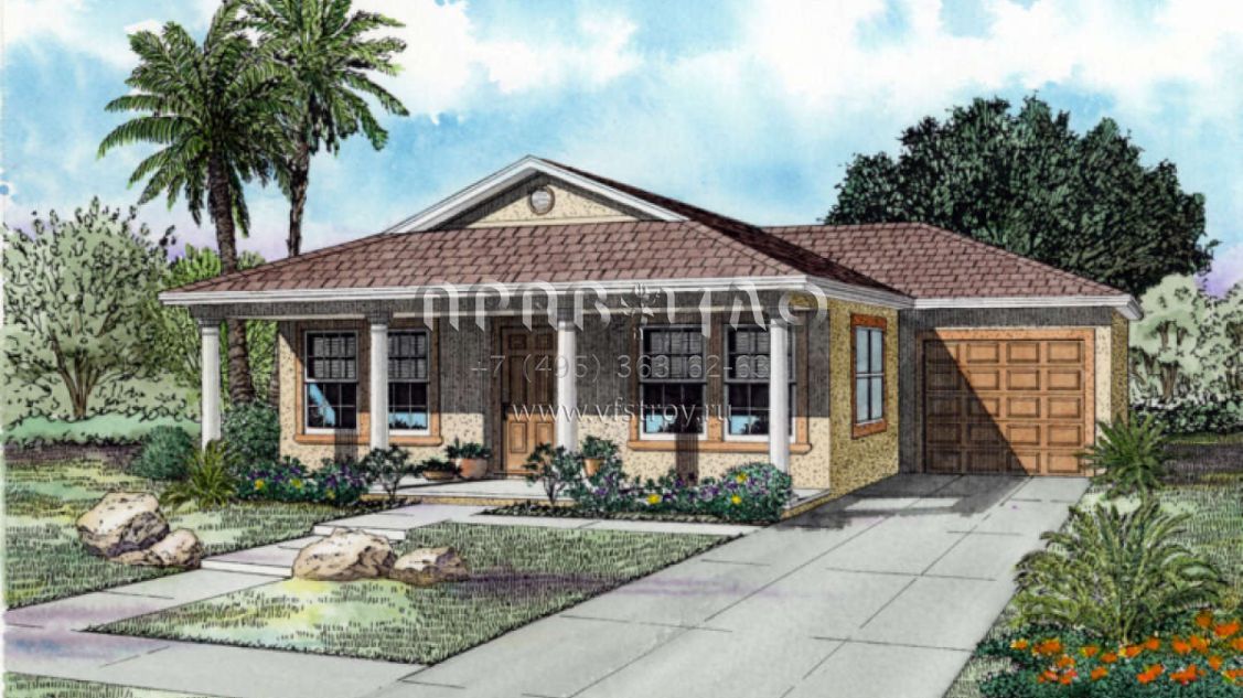 Проект одноэтажного дома с гаражом на одну машину в стиле Ранчо S5-116 (168-00003)