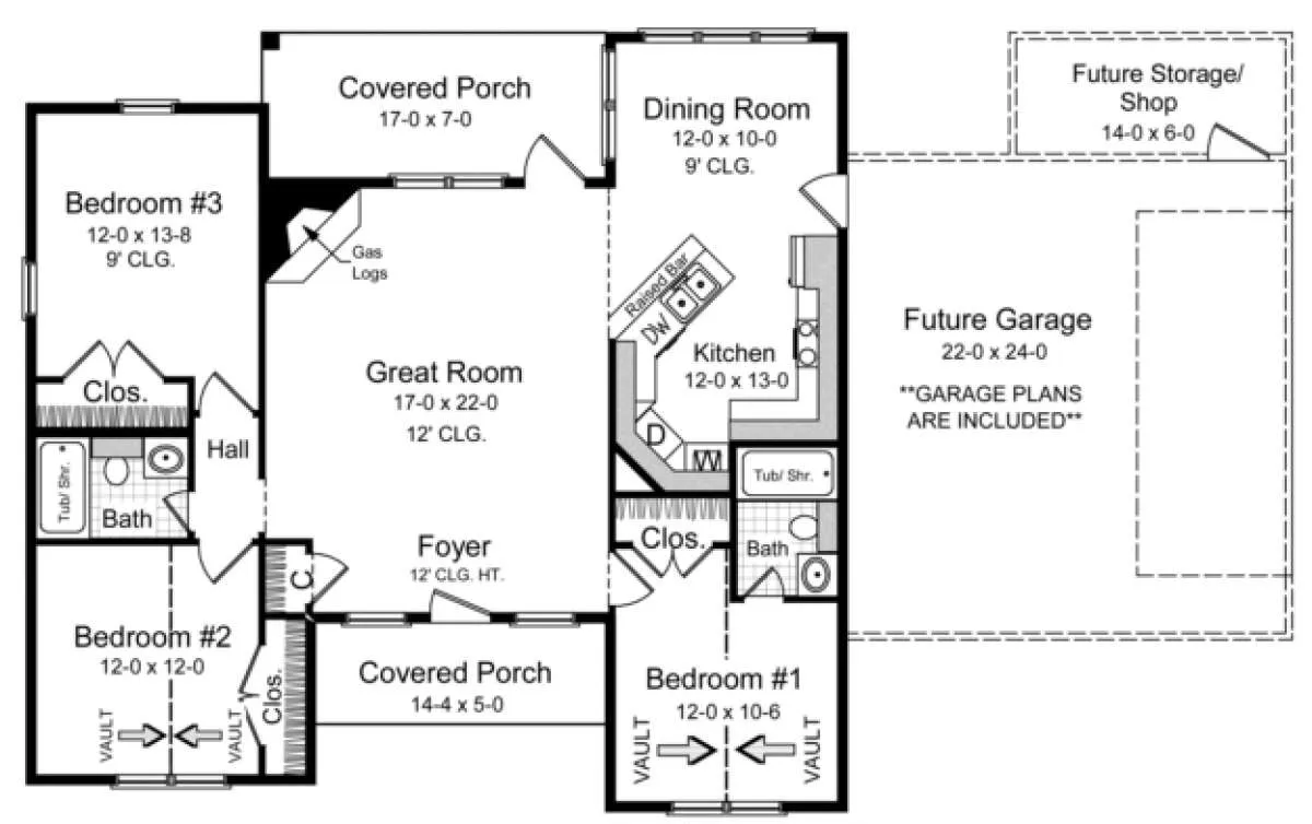 Проект одноэтажного дома без гаража в стиле Ранчо S5-116 (348-00009)