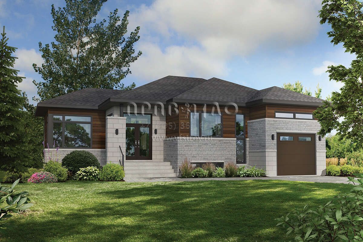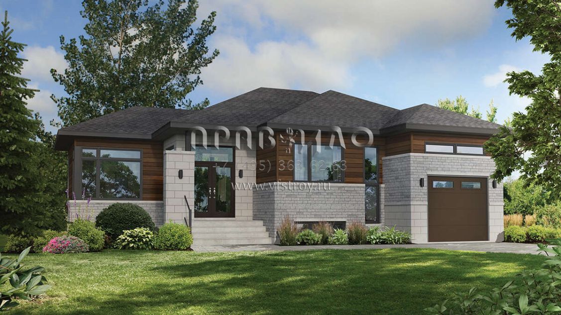 Проект одноэтажного дома с гаражом на одну машину в современном стиле S5-116 (6146-00478)