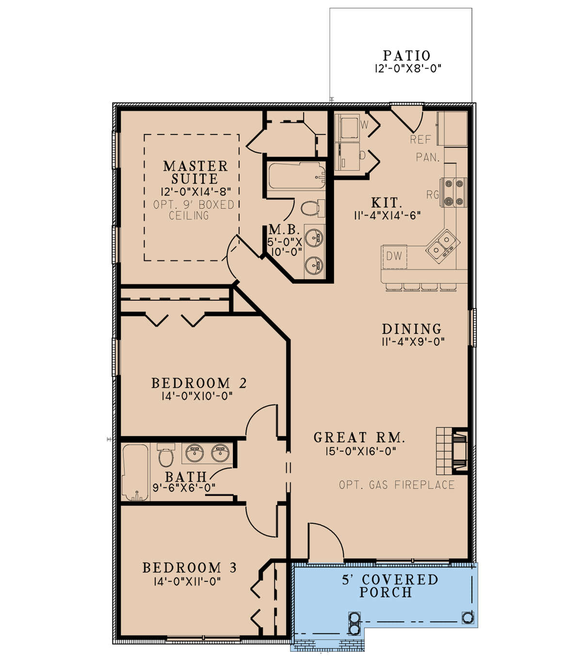 Это проект одноэтажного дома без гаража жилой площадью 116 кв.м. Длина дома 13.7 м, ширина 9.1 м, высота 6.4 м. В доме три спальни и два санузла.
