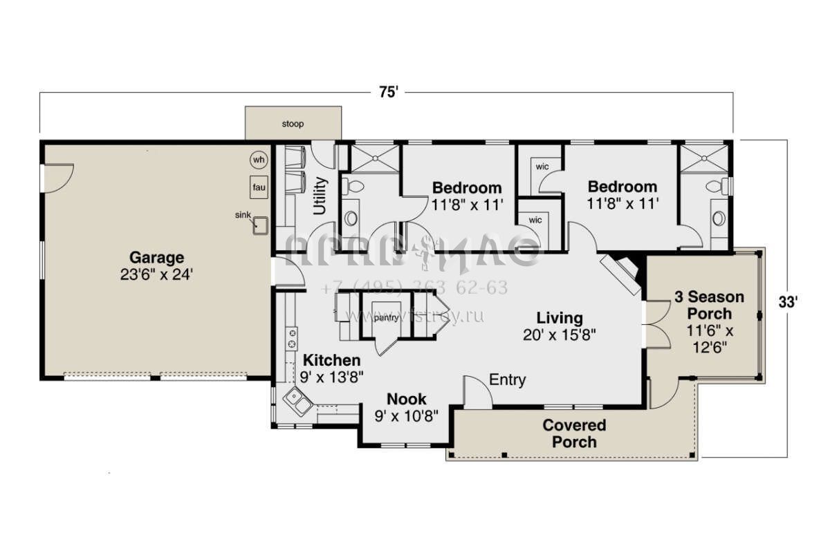 Проект одноэтажного дома с гаражом на две машины в стиле Ранчо S5-117 (035-01013)
