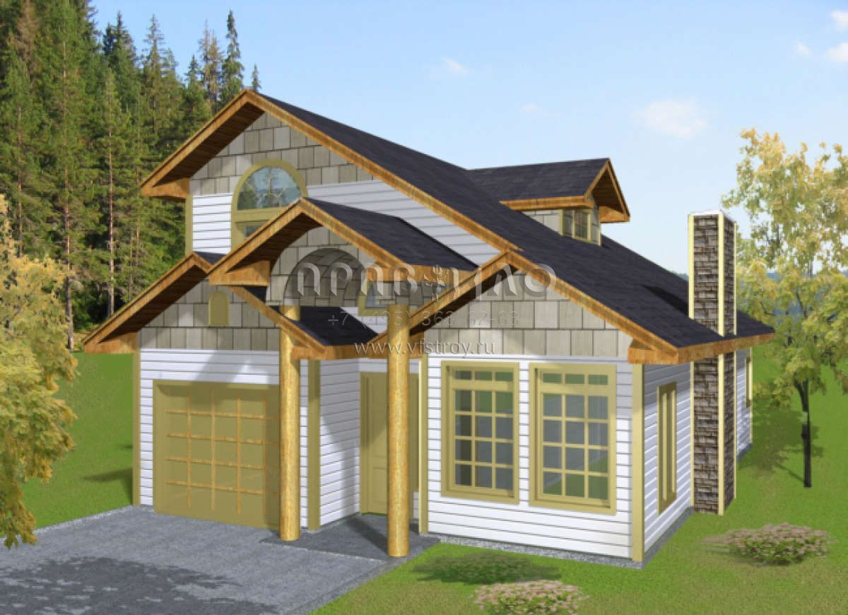 Проект двухэтажного дома с гаражом на одну машину в американском стиле S5-117 (039-00226)