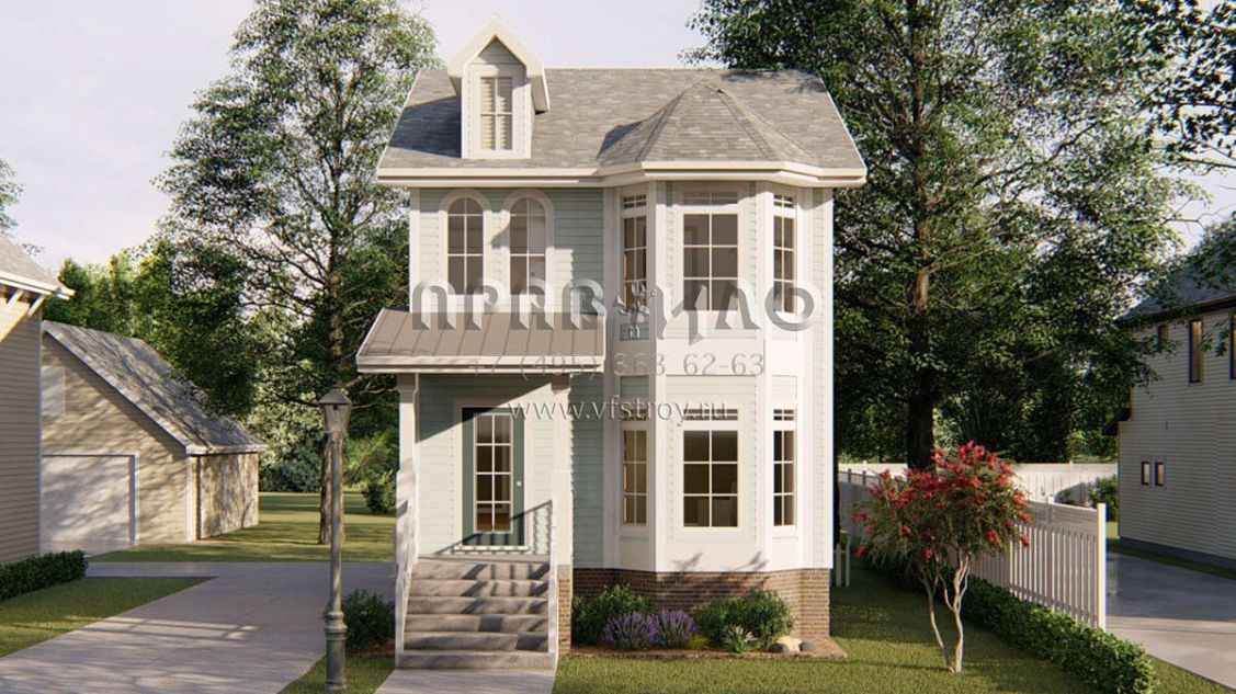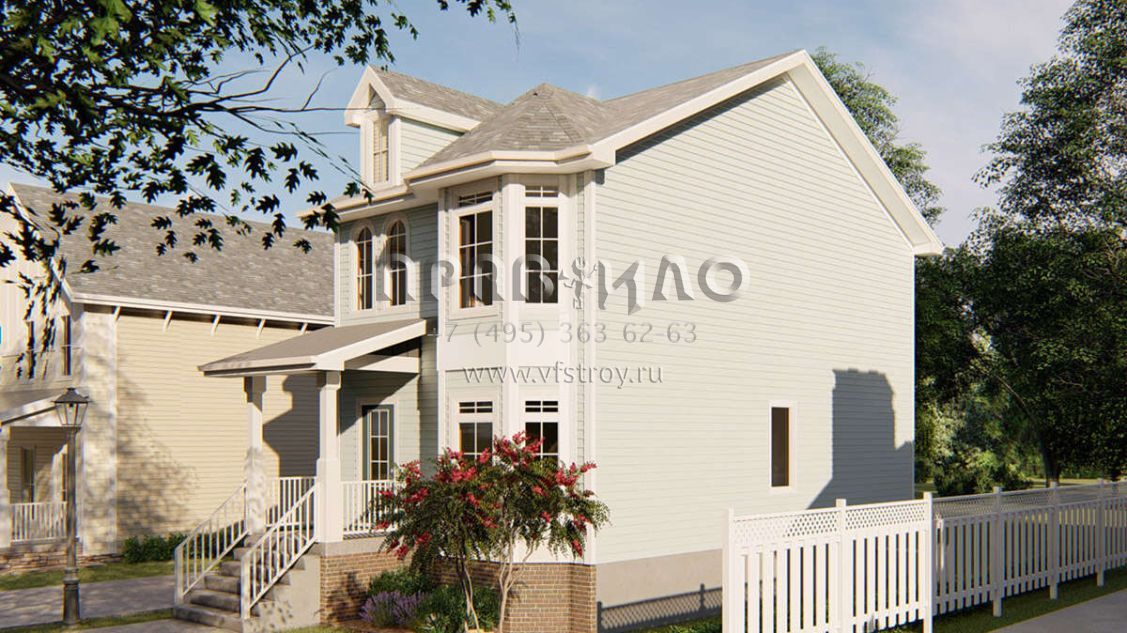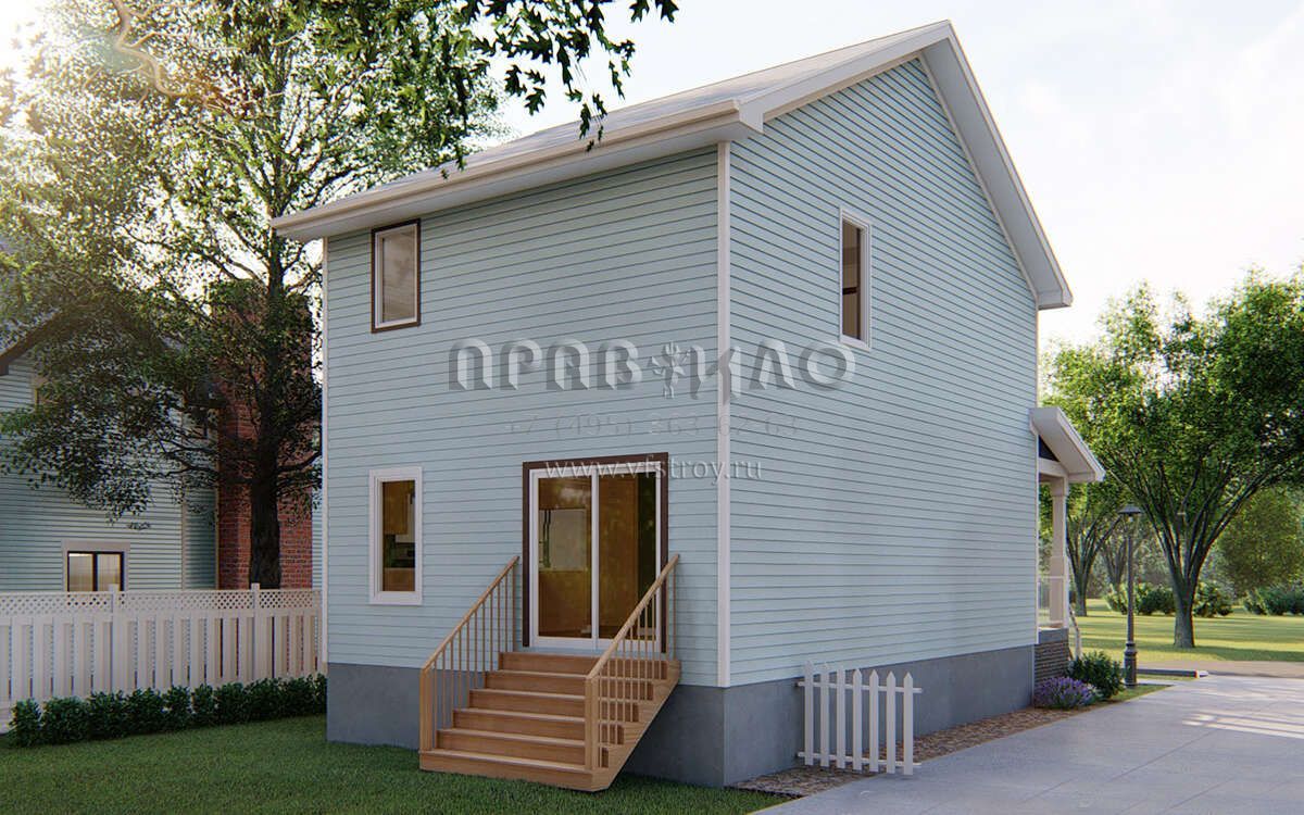 Это проект двухэтажного дома без гаража жилой площадью 117 кв.м. Длина дома 11.6 м, ширина 6.1 м, высота 9.4 м. В доме две спальни и два санузла.