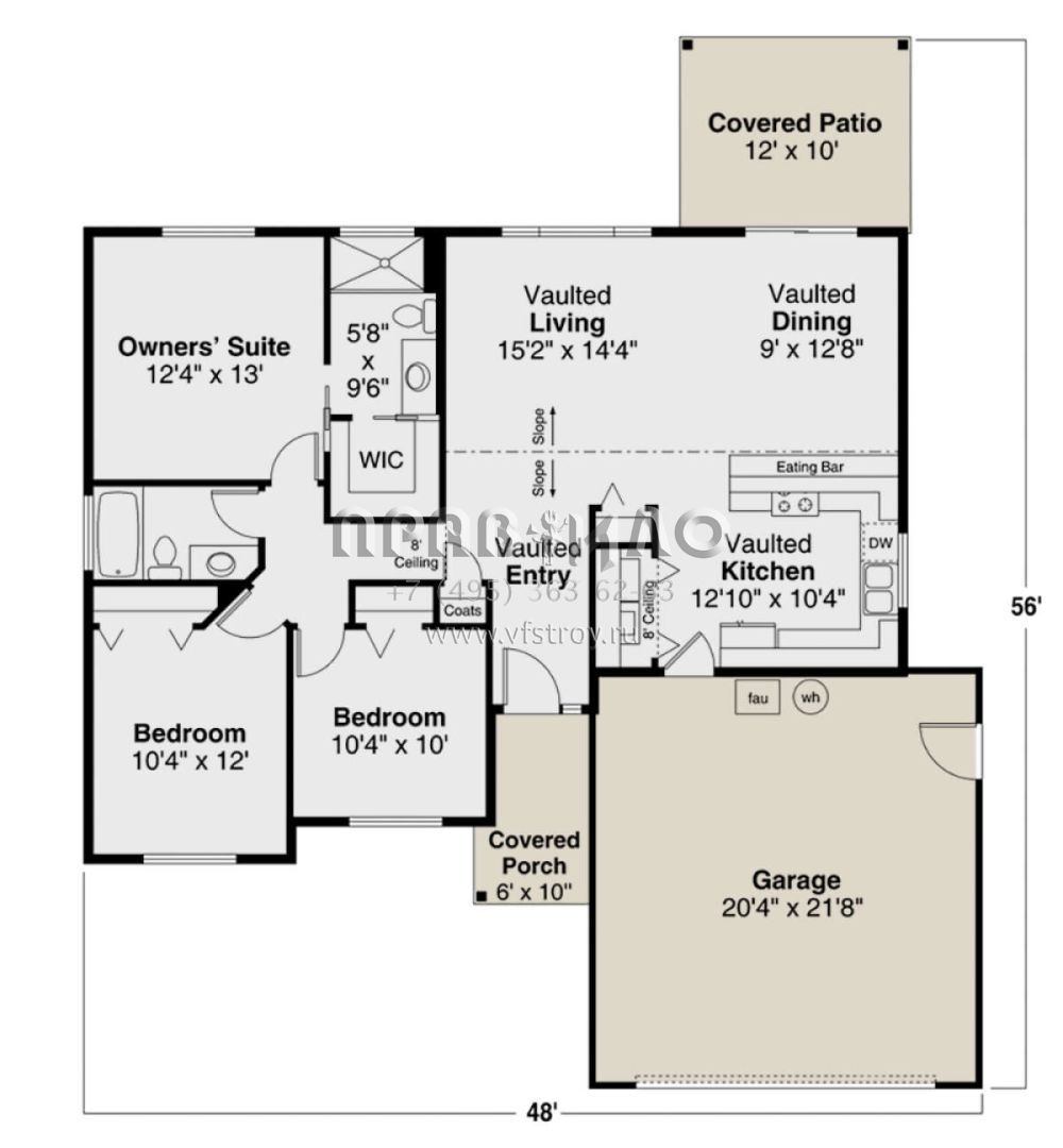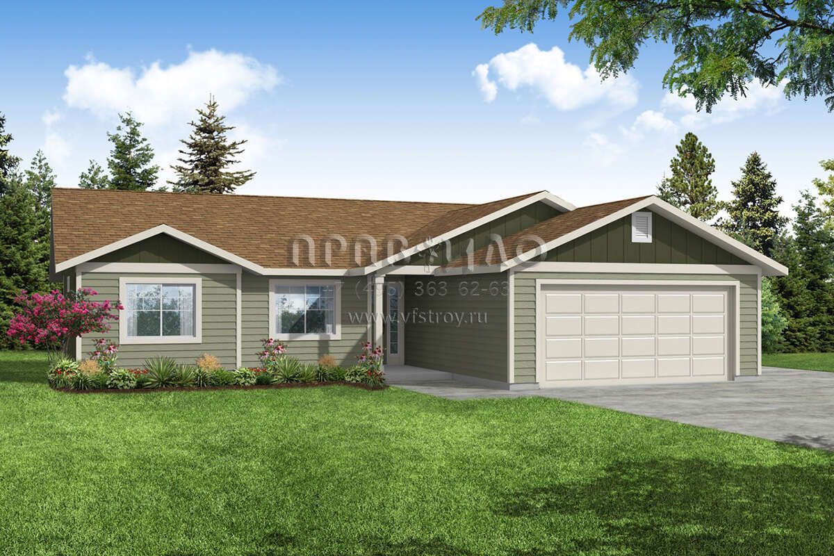 Проект одноэтажного дома с гаражом на две машины в стиле Ранчо S5-118 (035-00919)