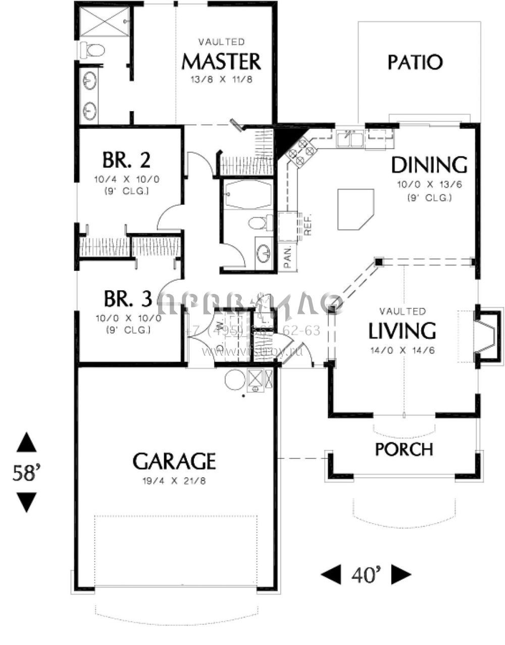 Проект одноэтажного дома с гаражом на две машины в стиле Ранчо S5-118 (2559-00052)