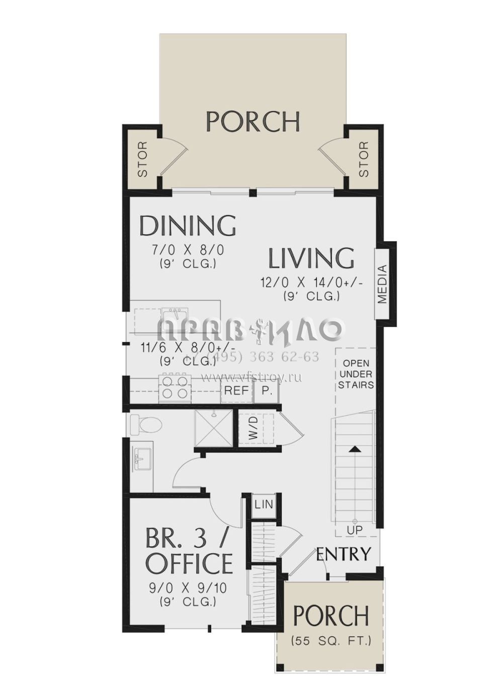 Поскольку этот проект разрабатывался иностранными архитекторами, для строительства дома требуется переработка проекта под действующие в России нормы. Данные визуализации проекта представлены для ознакомления с концепцией проекта. Проект разработан американским архитектурным бюро и представлен America's Best House Plans.
