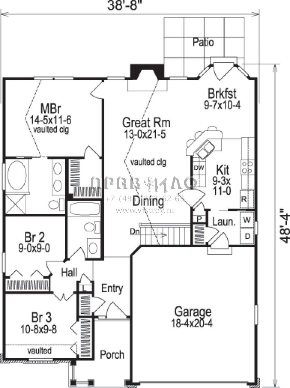 Проект одноэтажного дома с гаражом на две машины в стиле Ранчо S5-118 (5633-00077)