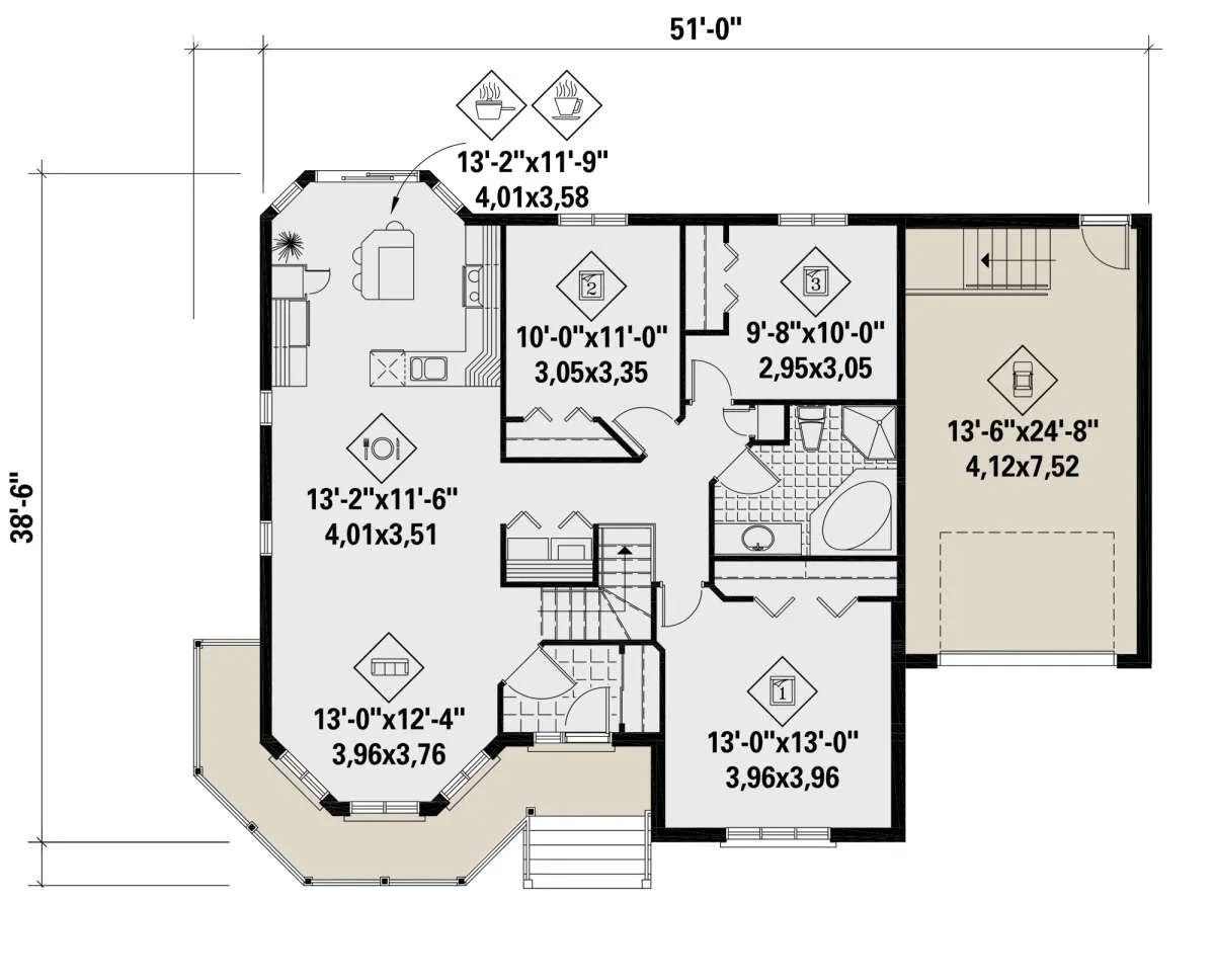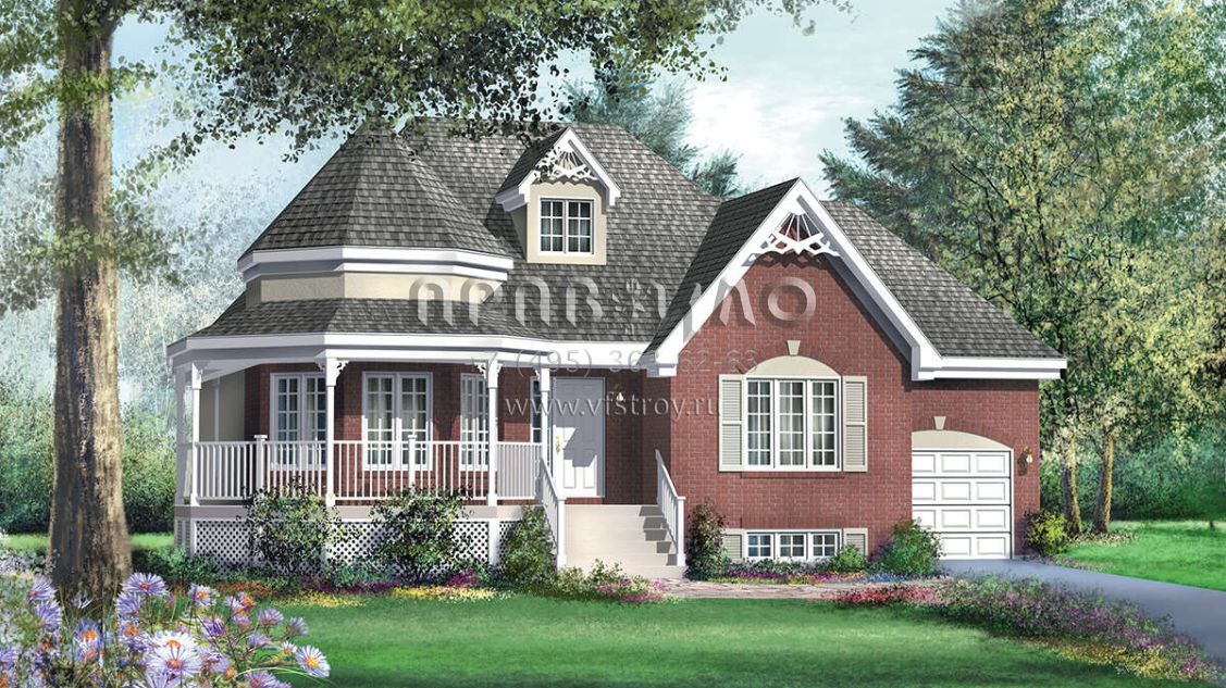 Проект одноэтажного дома с гаражом на одну машину в английском стиле S5-118 (6146-00416)