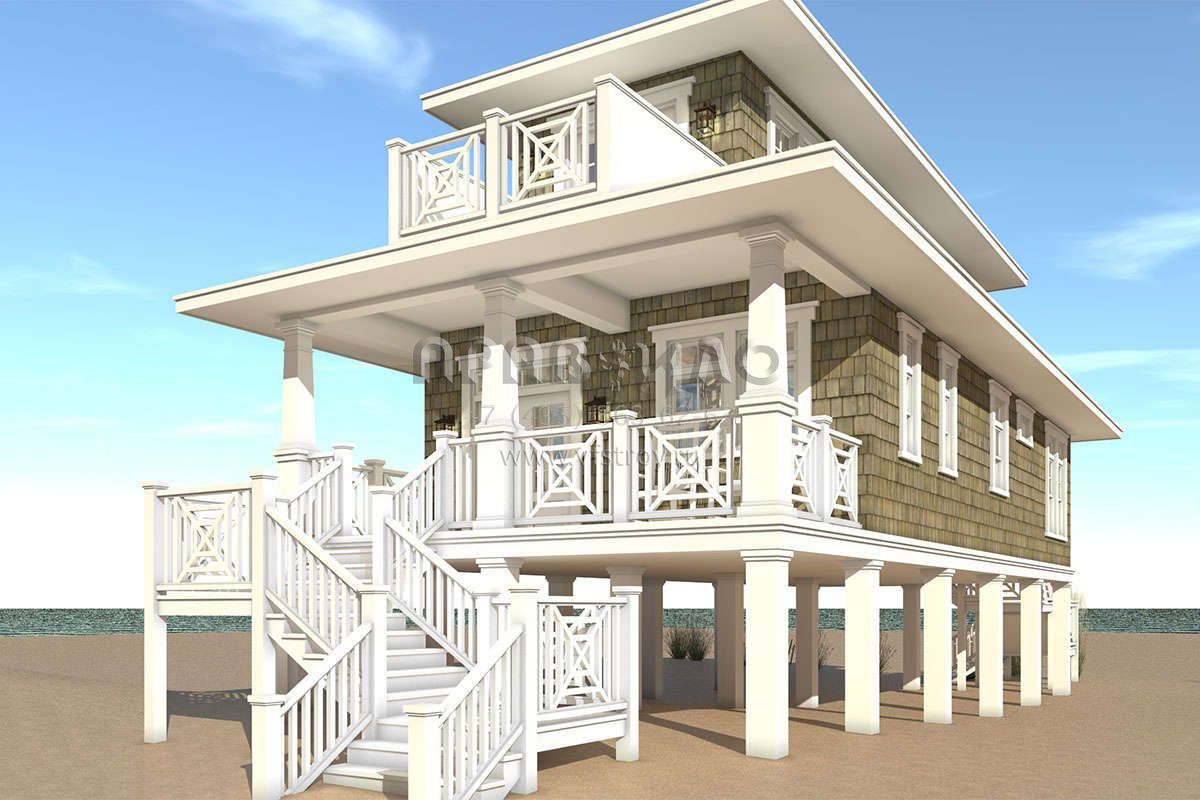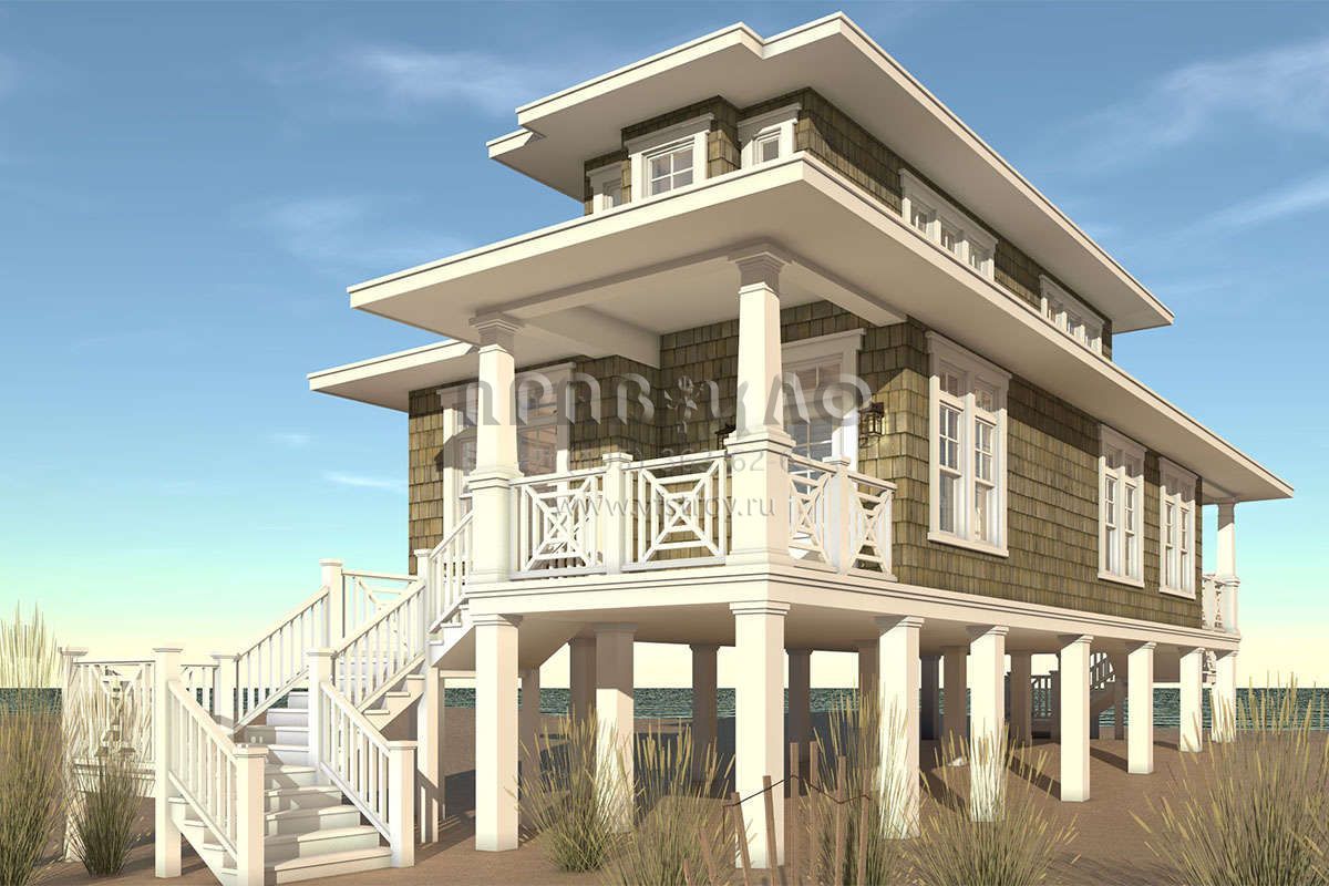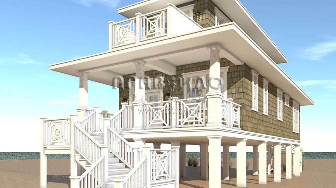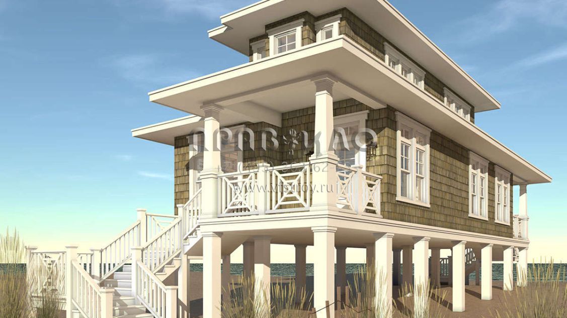 Проект двухэтажного дома без гаража в прибрежном стиле S5-119 (028-00121)