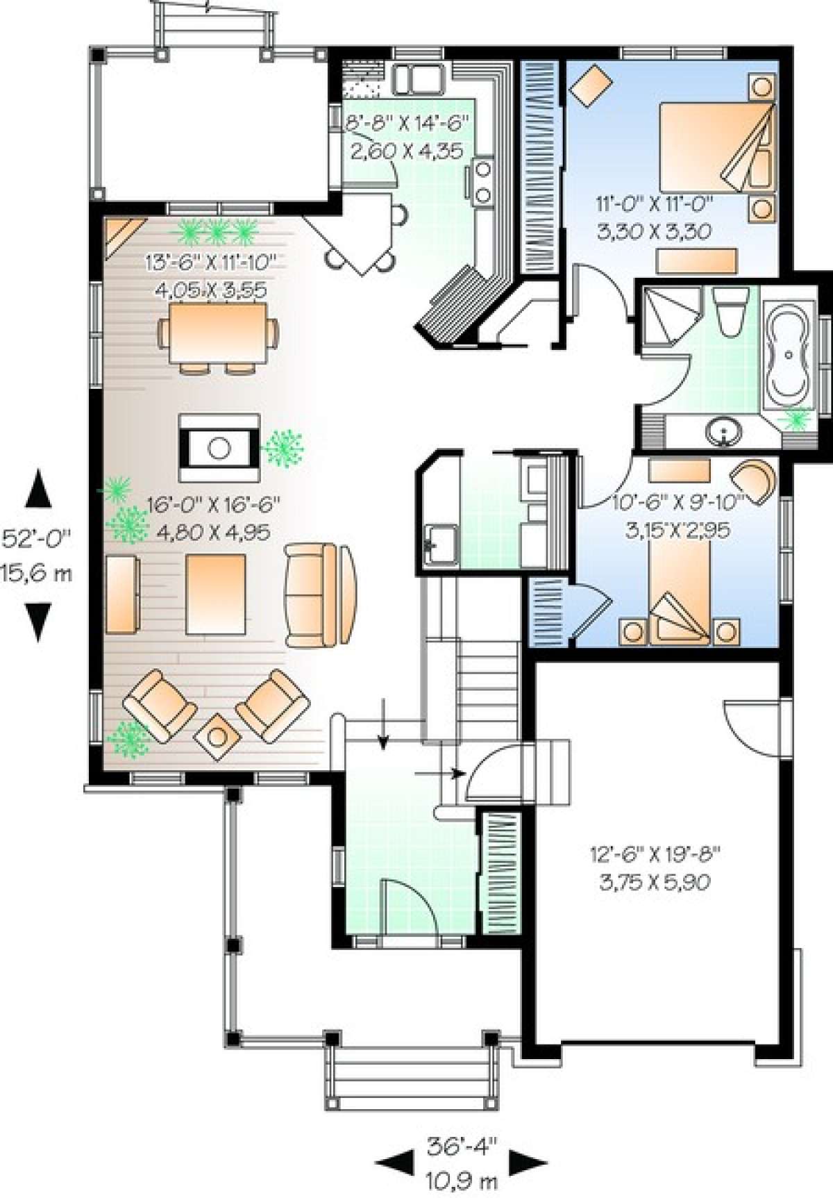 S5-119 (034-00649) Это иностранный проект, для которого требуется адаптация под нормы, действующие в Российской Федерации. Вы видите проект дома в английском стиле. В этом доме сочетаются черты сельской постройки и аскетичность лофта. Внутри жильцы смогут проводить время с максимальным комфортом. Обратим внимание, что сейчас на планировках все размеры представлены в футах. Для перевода в метры вам необходимо значение в футах умножить на 0,3048.