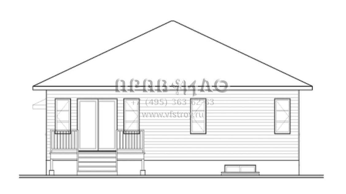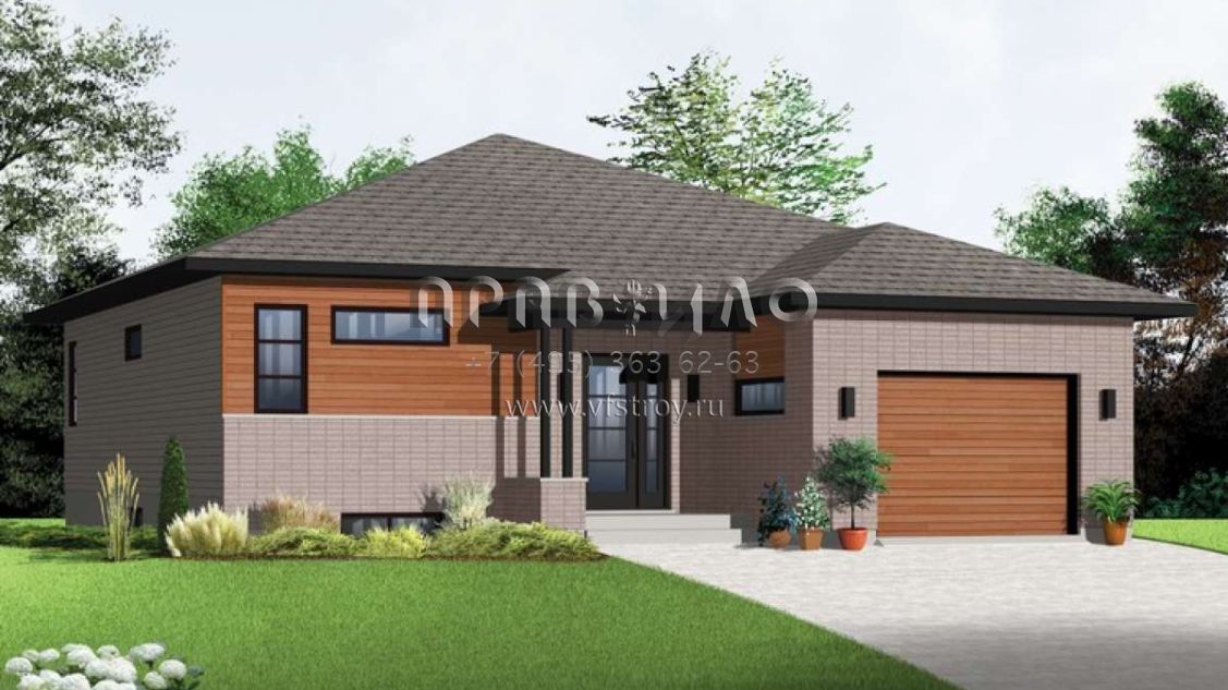 Это проект одноэтажного дома с гаражом на одну машину жилой площадью 119 кв.м. Длина дома 14.6 м, ширина 11.6 м, высота 5.8 м. В доме две спальни и один санузел.