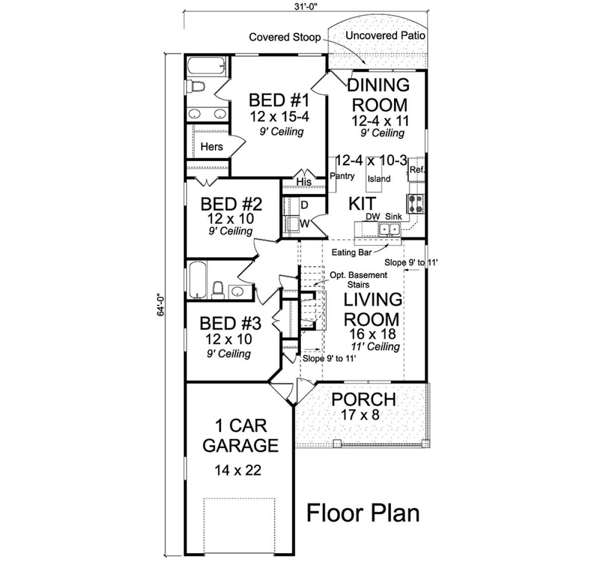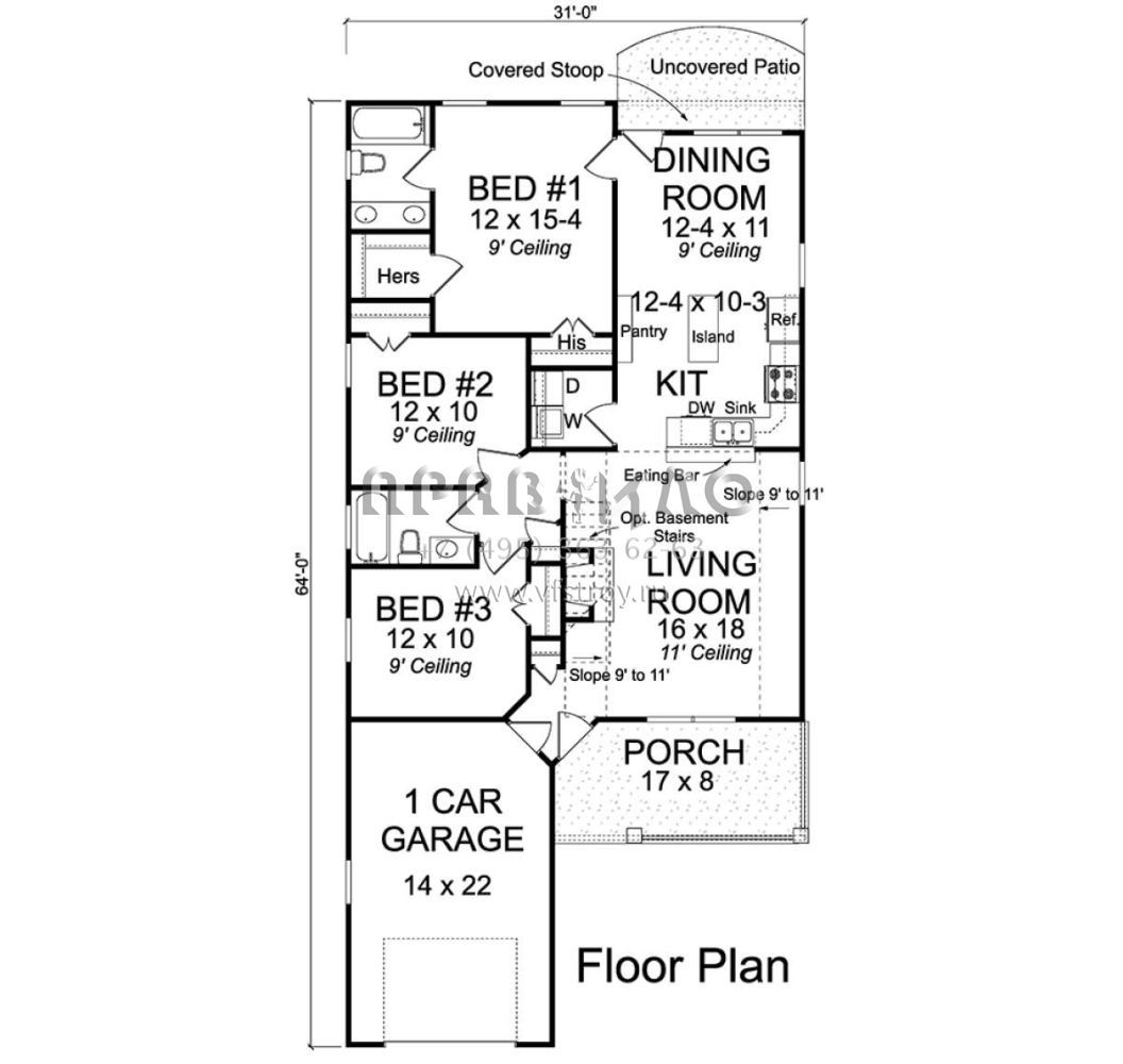 Проект одноэтажного дома с гаражом на одну машину в стиле Ранчо S5-119 (4848-00351)