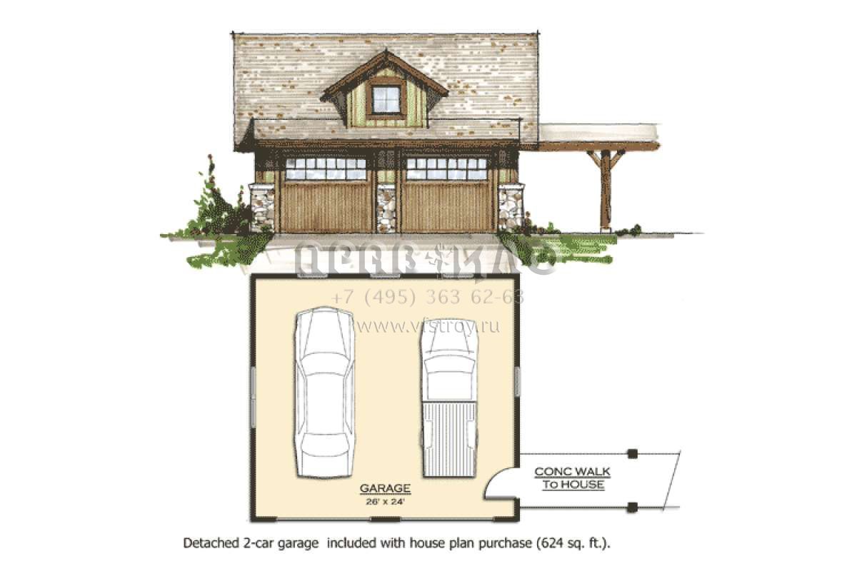 Проект двухэтажного дома с гаражом на две машины в стиле Шале S5-119 (8504-00072)