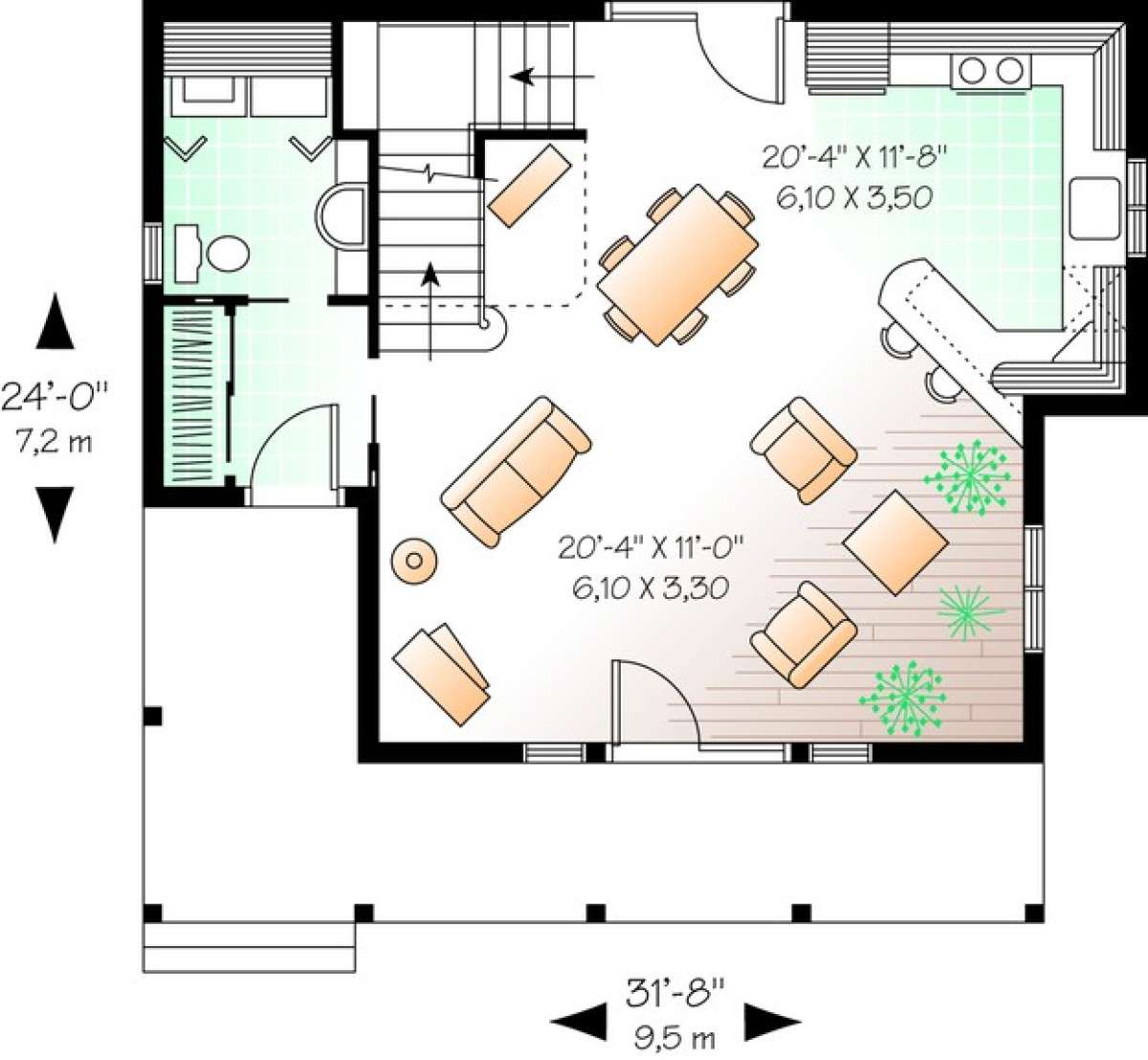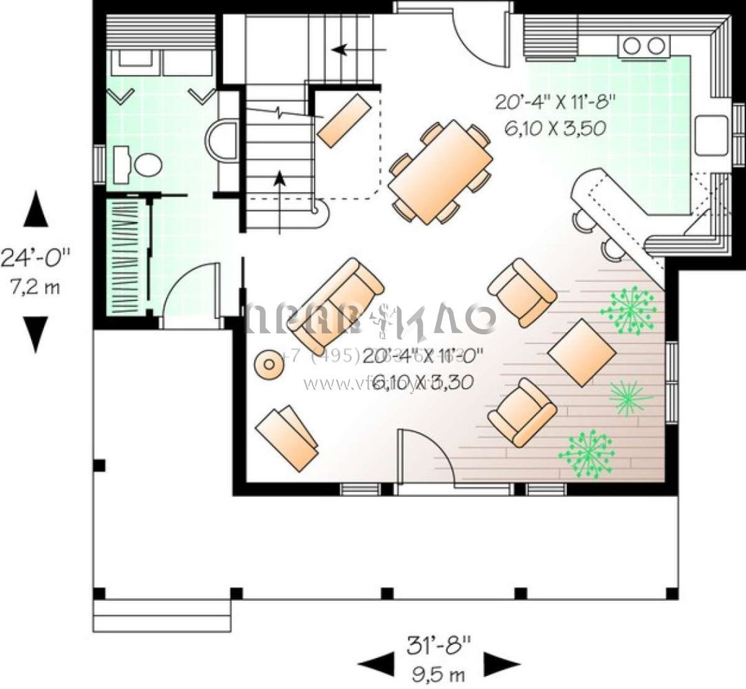 S5-120 (034-00921) Это иностранный проект, для которого требуется адаптация под нормы, действующие в Российской Федерации. Вы видите проект дома в стиле Ранчо. В этом доме сочетаются черты сельской постройки и аскетичность лофта. Внутри жильцы смогут проводить время с максимальным комфортом. Обратим внимание, что сейчас на планировках все размеры представлены в футах. Для перевода в метры вам необходимо значение в футах умножить на 0,3048.