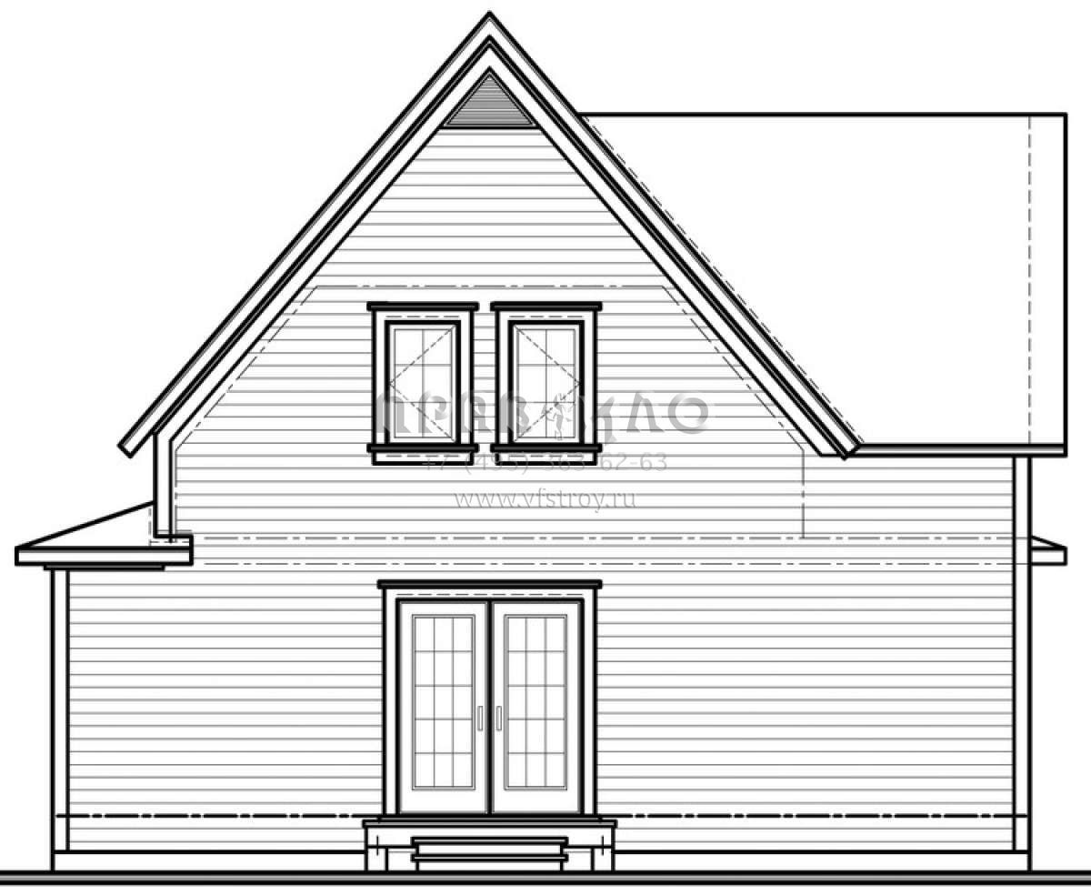 Это проект двухэтажного дома без гаража жилой площадью 120 кв.м. Длина дома 7.3 м, ширина 9.4 м, высота 8.2 м. В доме две спальни и один санузел.