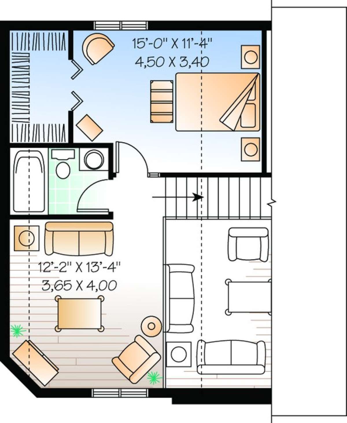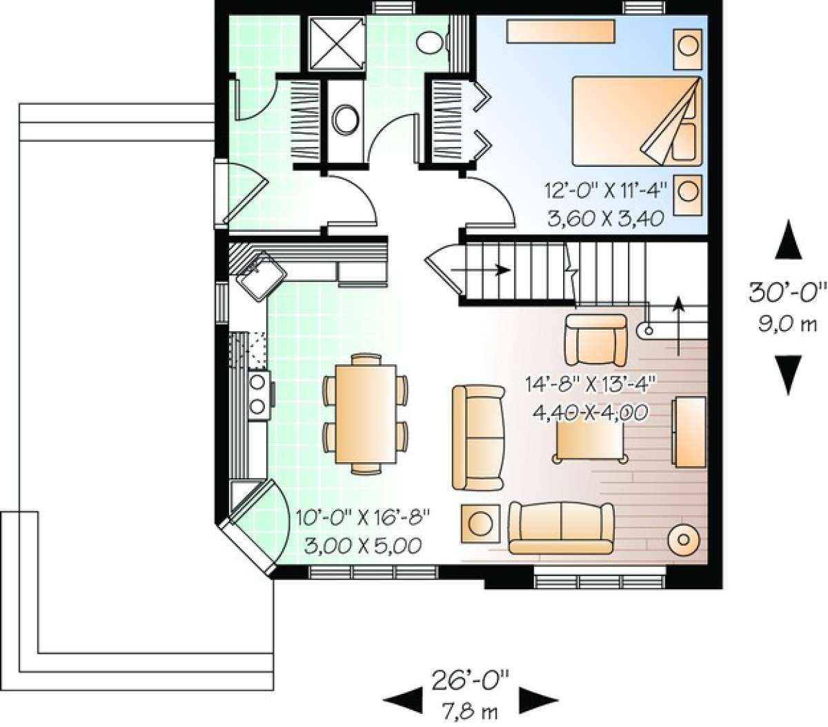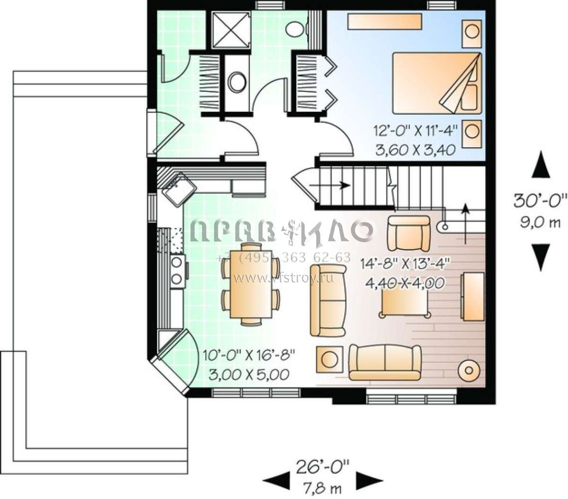 S5-120 (034-00940) Это иностранный проект, для которого требуется адаптация под нормы, действующие в Российской Федерации. Вы видите проект дома в современном стиле. В этом доме сочетаются черты сельской постройки и аскетичность лофта. Внутри жильцы смогут проводить время с максимальным комфортом. Обратим внимание, что сейчас на планировках все размеры представлены в футах. Для перевода в метры вам необходимо значение в футах умножить на 0,3048.