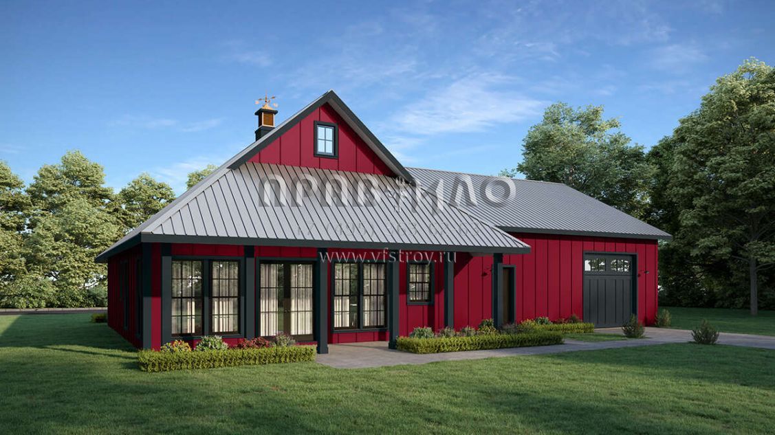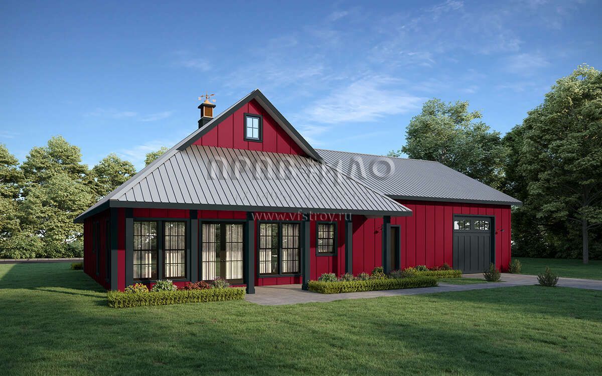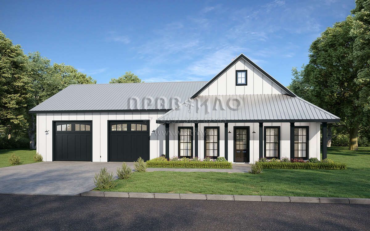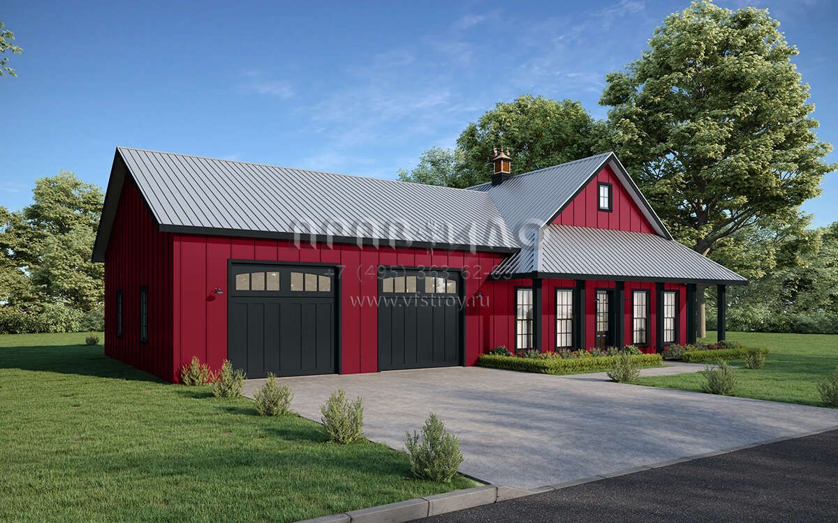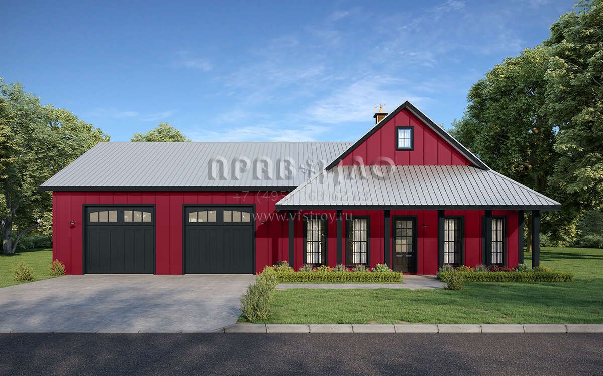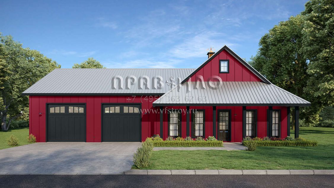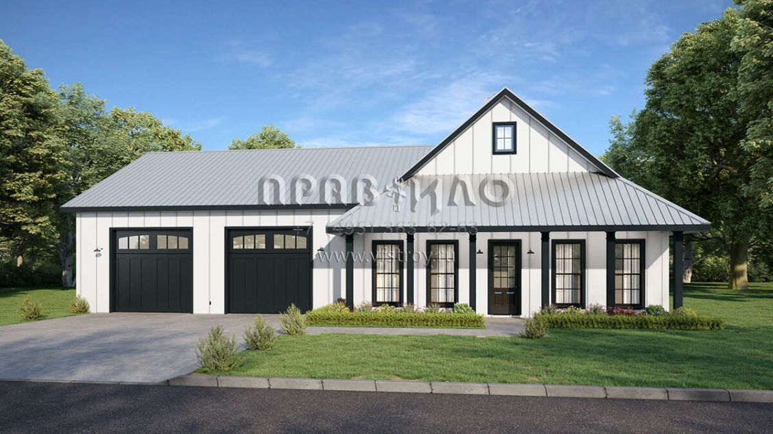 Проект одноэтажного дома с гаражом на три и более машин в стиле БарнХаус S5-120 (1776-00129)