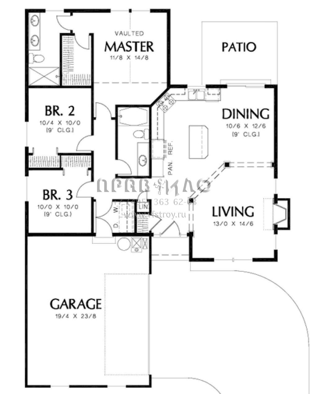 S5-120 (2559-00053) Это иностранный проект, для которого требуется адаптация под нормы, действующие в Российской Федерации. Вы видите проект дома в стиле Ранчо. В этом доме сочетаются черты сельской постройки и аскетичность лофта. Внутри жильцы смогут проводить время с максимальным комфортом. Обратим внимание, что сейчас на планировках все размеры представлены в футах. Для перевода в метры вам необходимо значение в футах умножить на 0,3048.