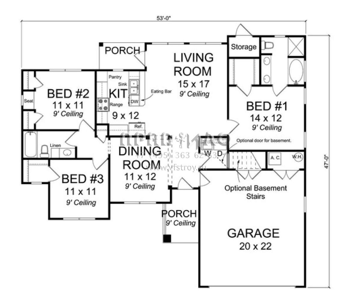 Проект одноэтажного дома с гаражом на две машины в стиле Ранчо S5-120 (4848-00035)