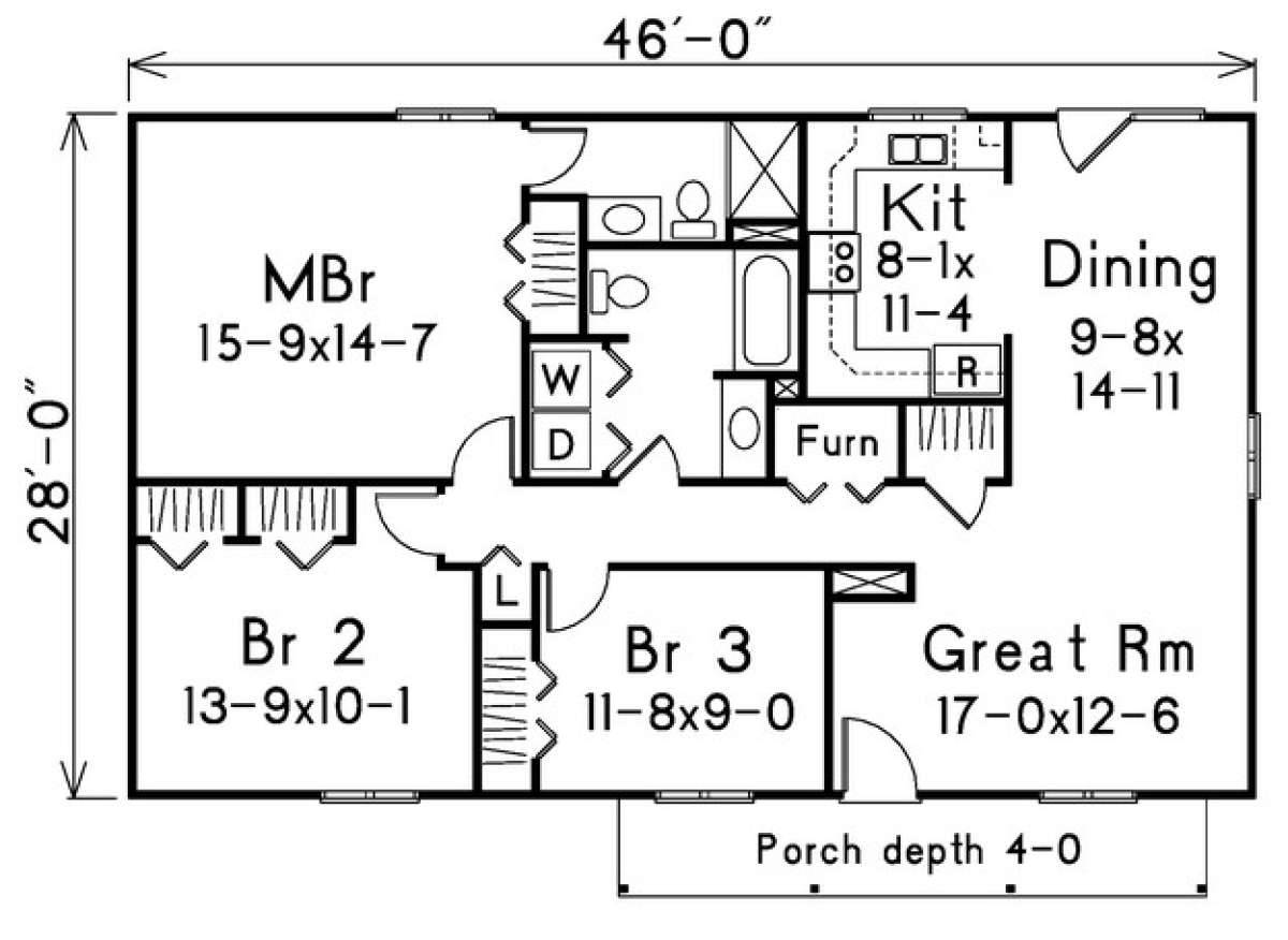 Проект одноэтажного дома без гаража в стиле Ранчо S5-120 (5633-00012)