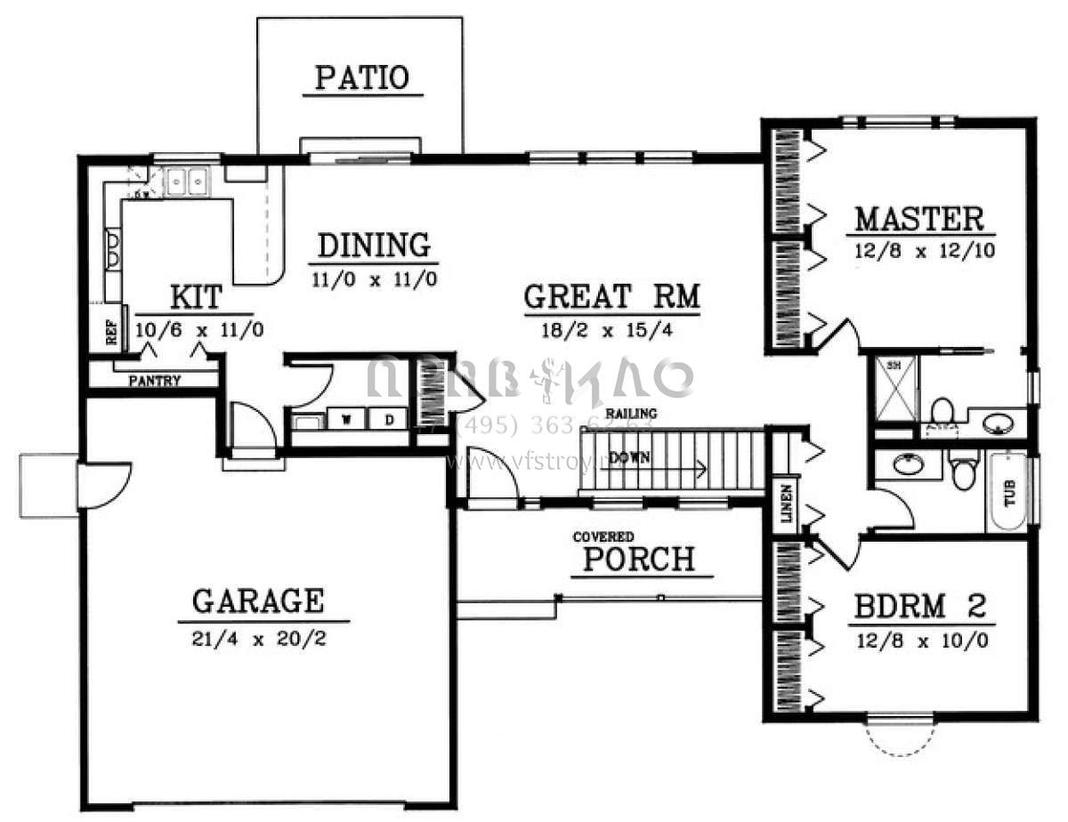 S5-120 (692-00062) Это иностранный проект, для которого требуется адаптация под нормы, действующие в Российской Федерации. Вы видите проект дома в стиле Ранчо. В этом доме сочетаются черты сельской постройки и аскетичность лофта. Внутри жильцы смогут проводить время с максимальным комфортом. Обратим внимание, что сейчас на планировках все размеры представлены в футах. Для перевода в метры вам необходимо значение в футах умножить на 0,3048.