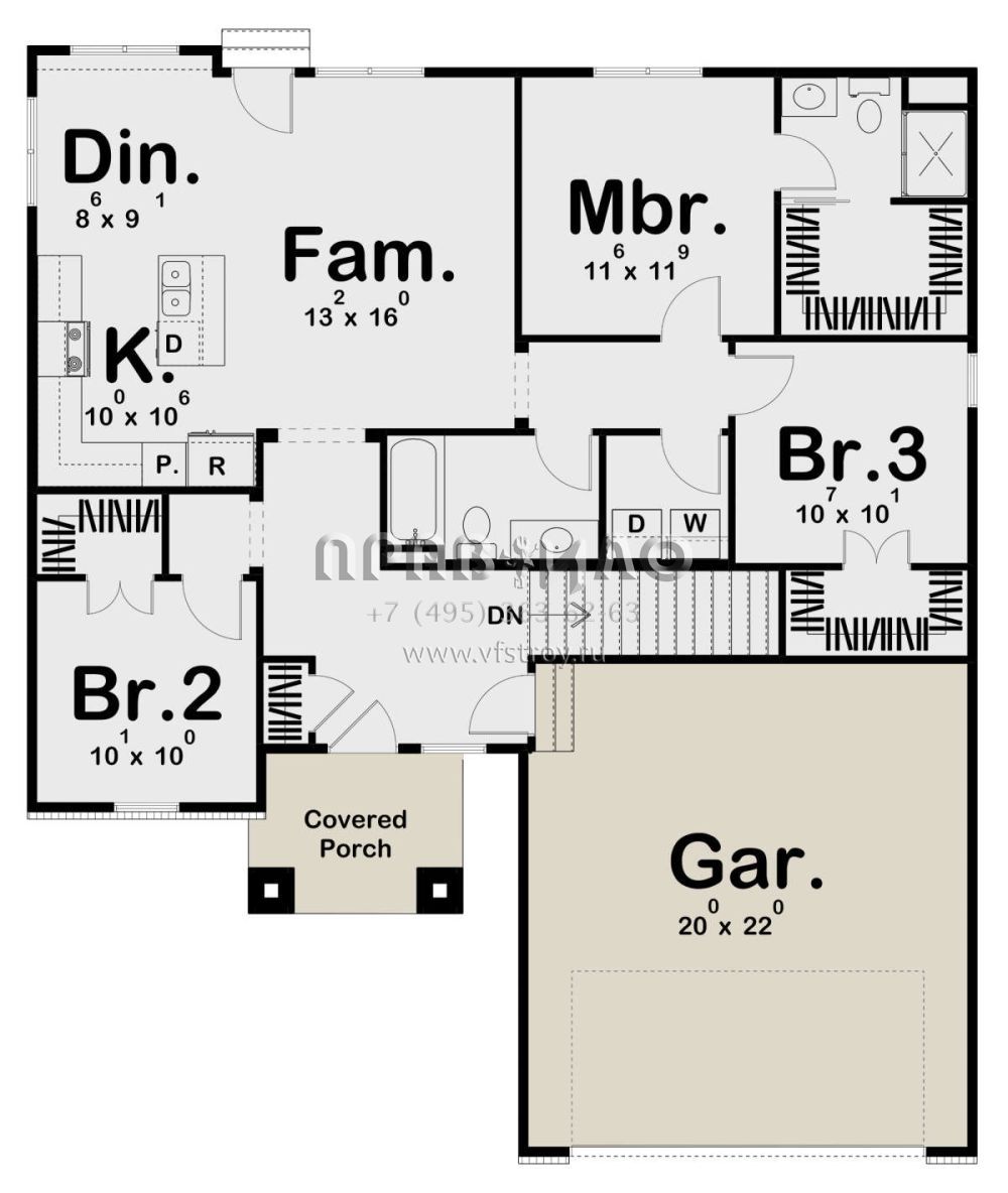 Проект одноэтажного дома с гаражом на две машины в стиле Райт S5-120 (963-00340)