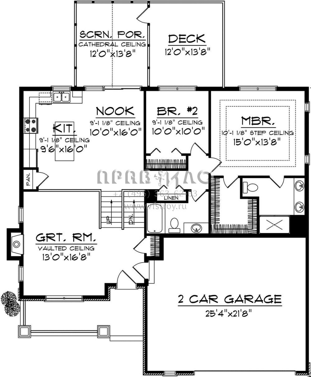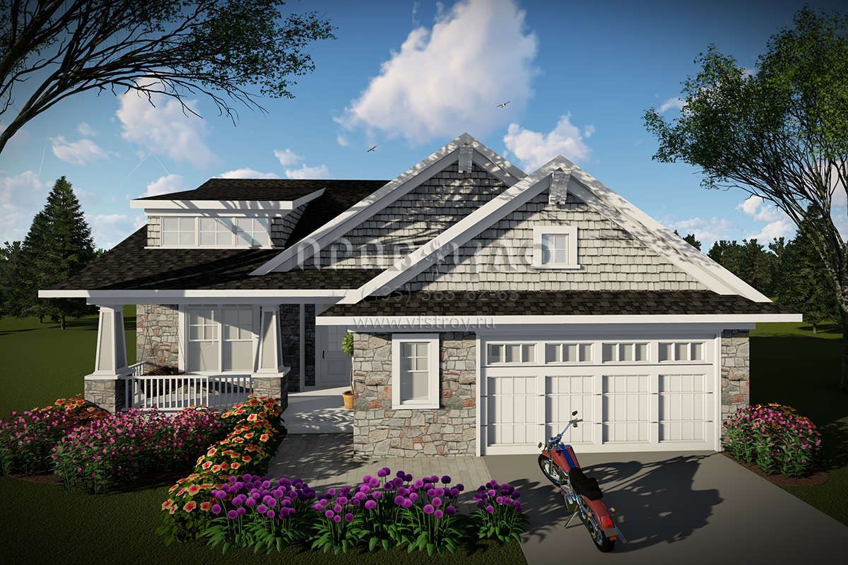 Проект одноэтажного дома с гаражом на две машины в американском стиле S5-121 (1020-00293)