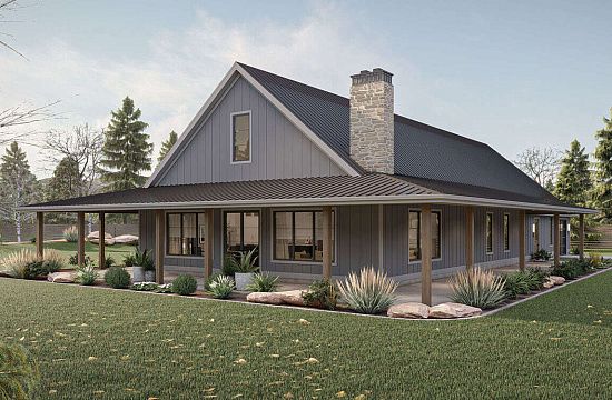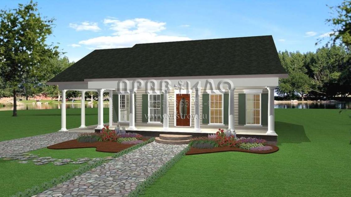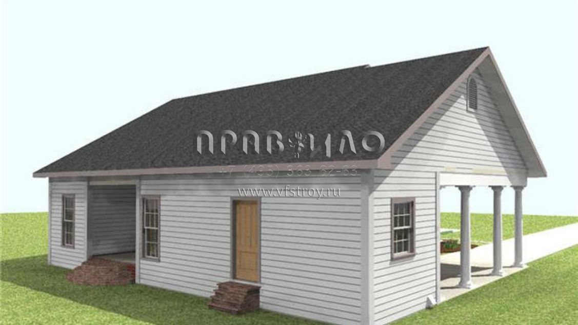Проект одноэтажного дома с гаражом на одну машину в стиле Ранчо S5-121 (1776-00013)