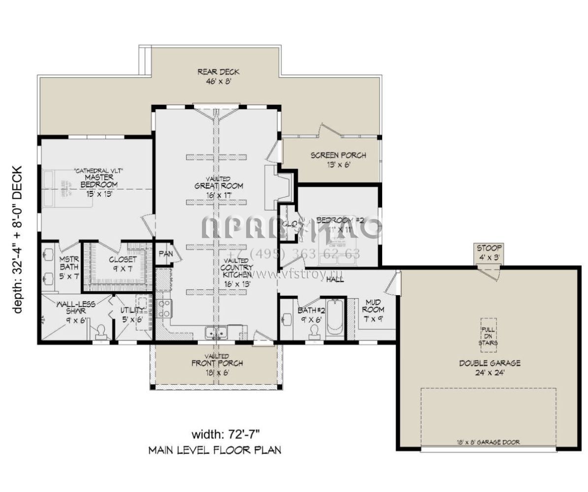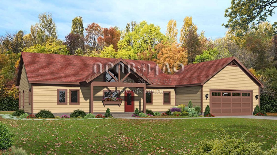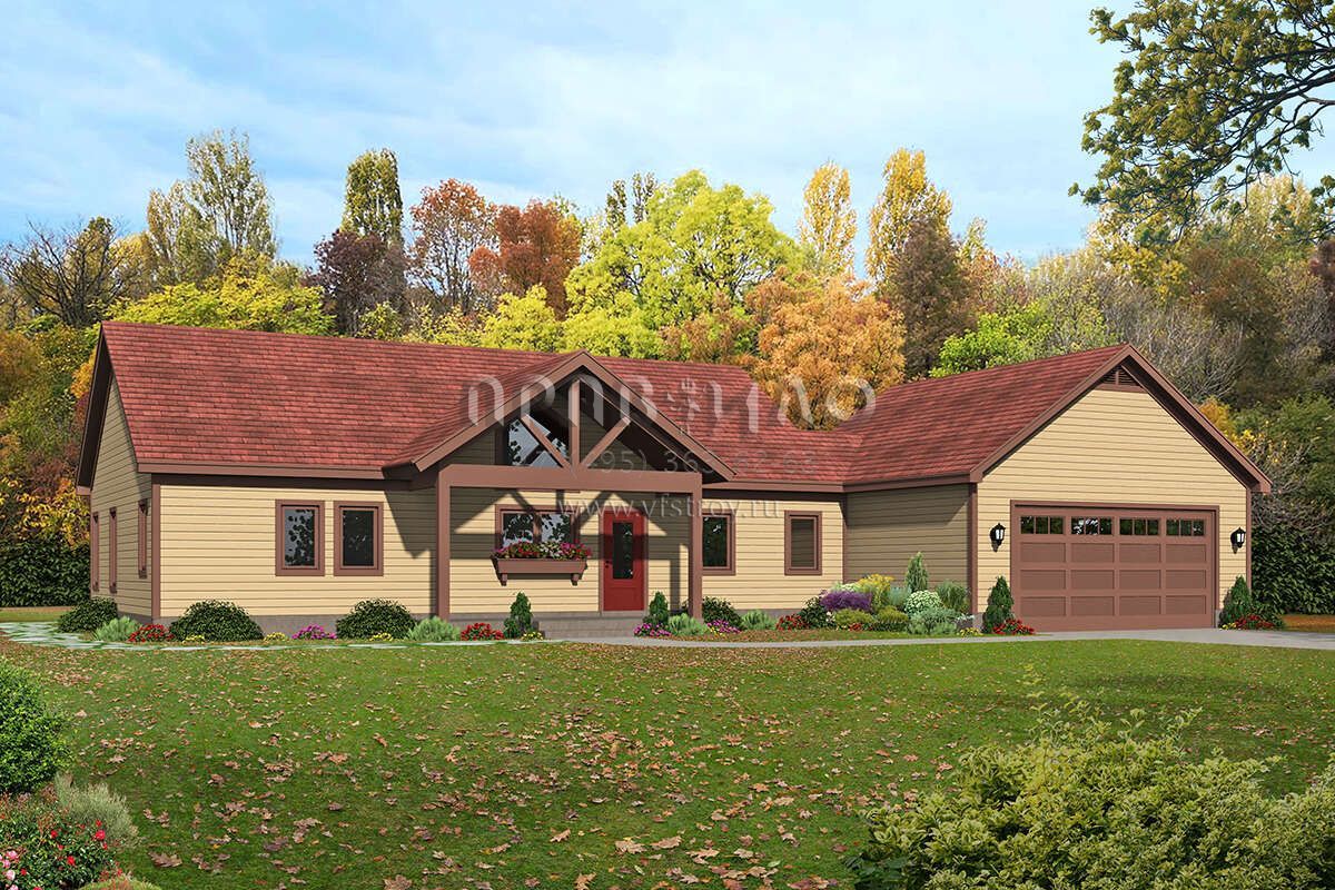 Проект одноэтажного дома с гаражом на две машины в стиле Ранчо S5-121 (940-00443)