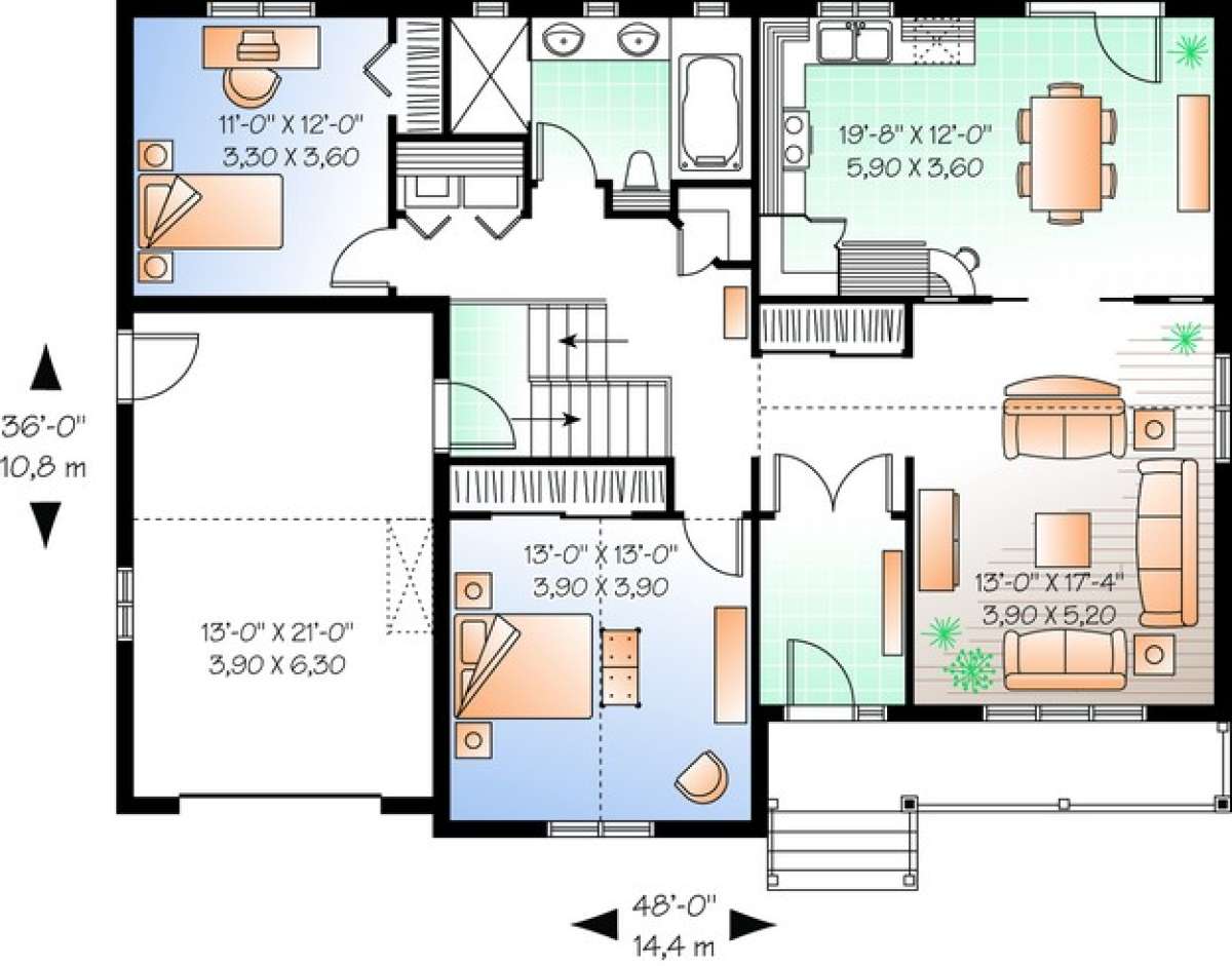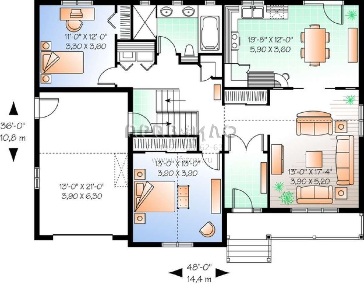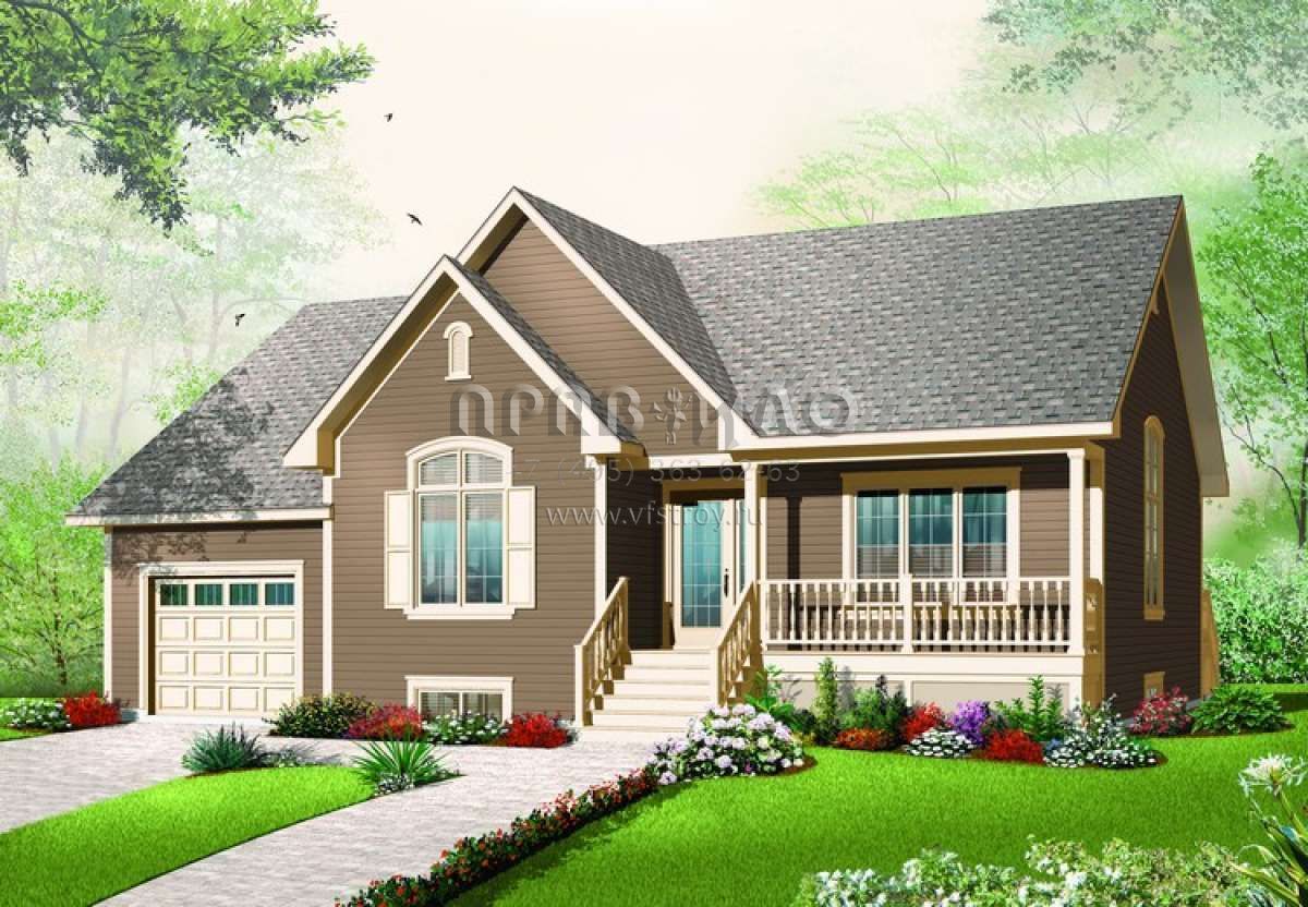 Проект одноэтажного дома с гаражом на одну машину в стиле Ранчо S5-122 (034-00210)