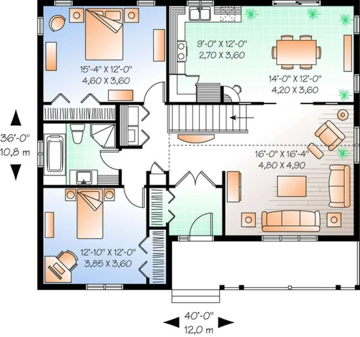S5-122 (034-00626) Это иностранный проект, для которого требуется адаптация под нормы, действующие в Российской Федерации. Вы видите проект дома в стиле Ранчо. В этом доме сочетаются черты сельской постройки и аскетичность лофта. Внутри жильцы смогут проводить время с максимальным комфортом. Обратим внимание, что сейчас на планировках все размеры представлены в футах. Для перевода в метры вам необходимо значение в футах умножить на 0,3048.