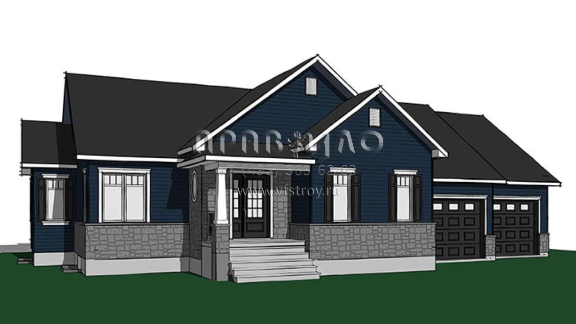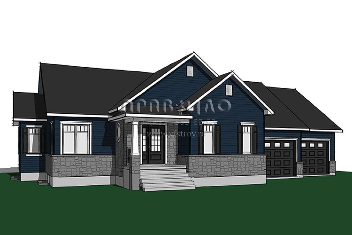 Проект одноэтажного дома с гаражом на две машины в стиле Ранчо S5-122 (034-01084)