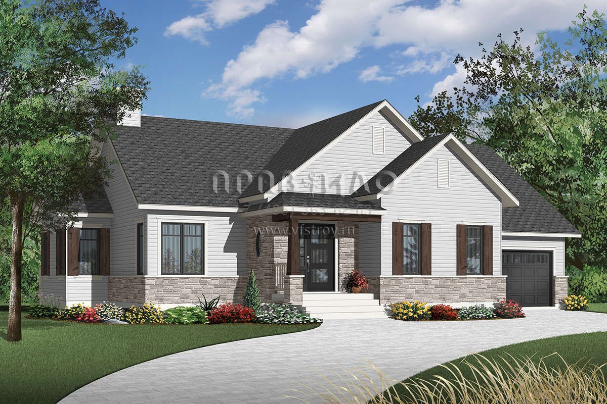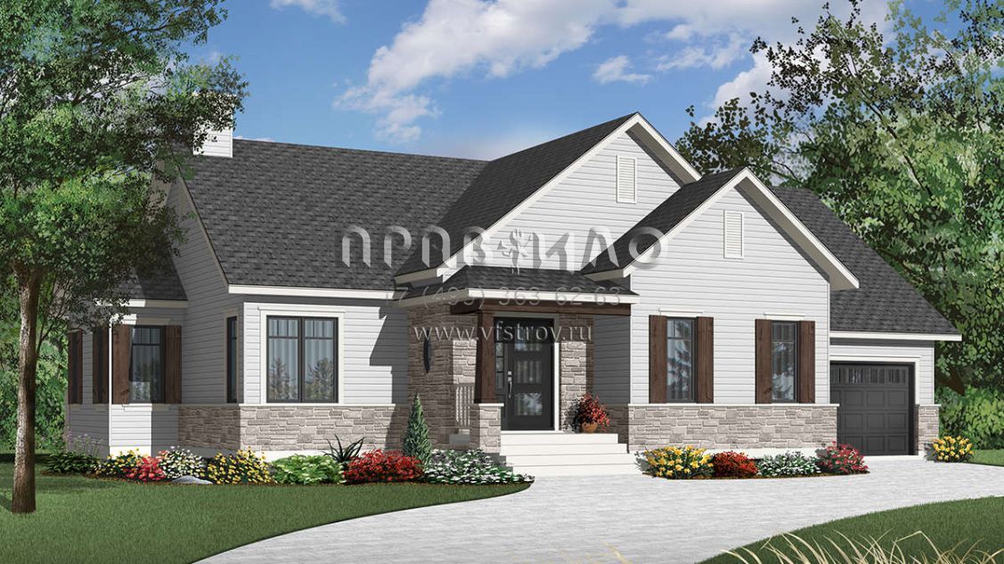 Проект одноэтажного дома с гаражом на одну машину в стиле Ранчо S5-122 (034-01164)