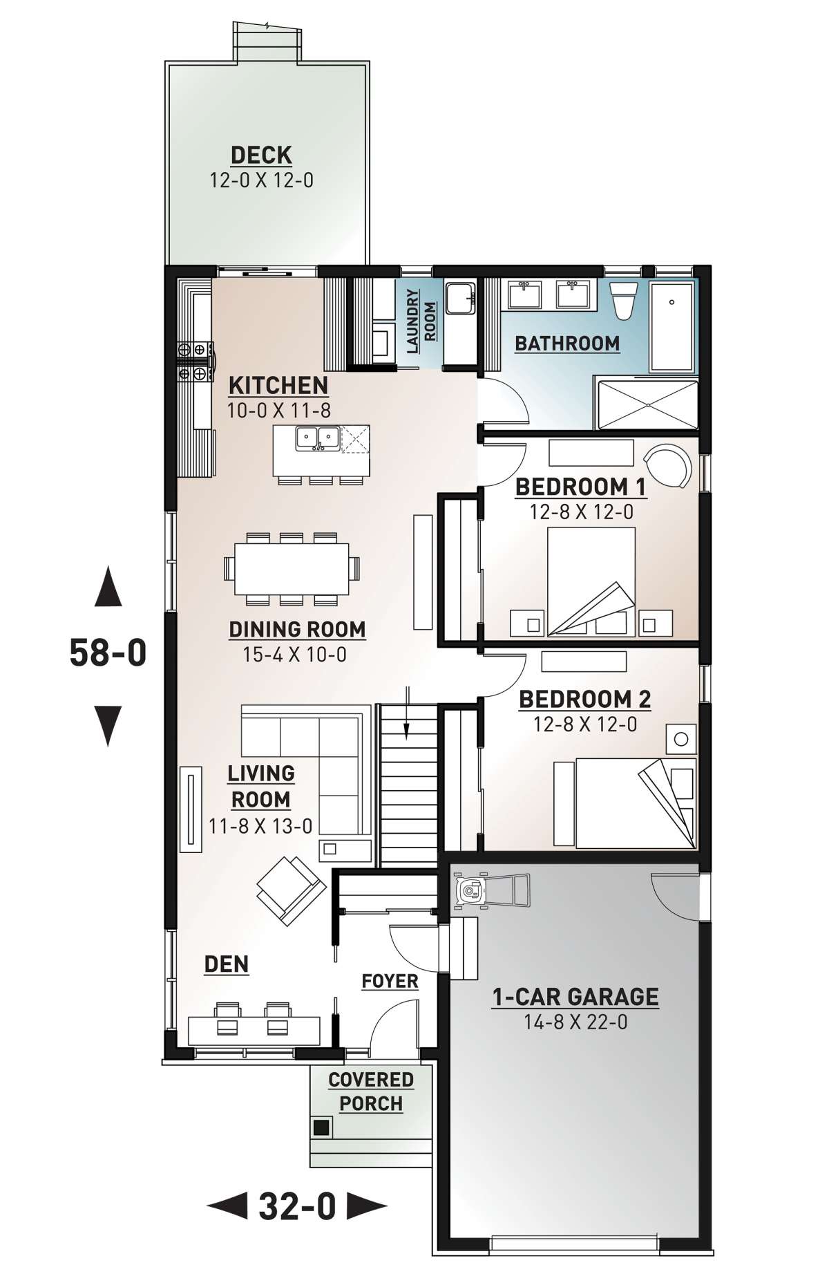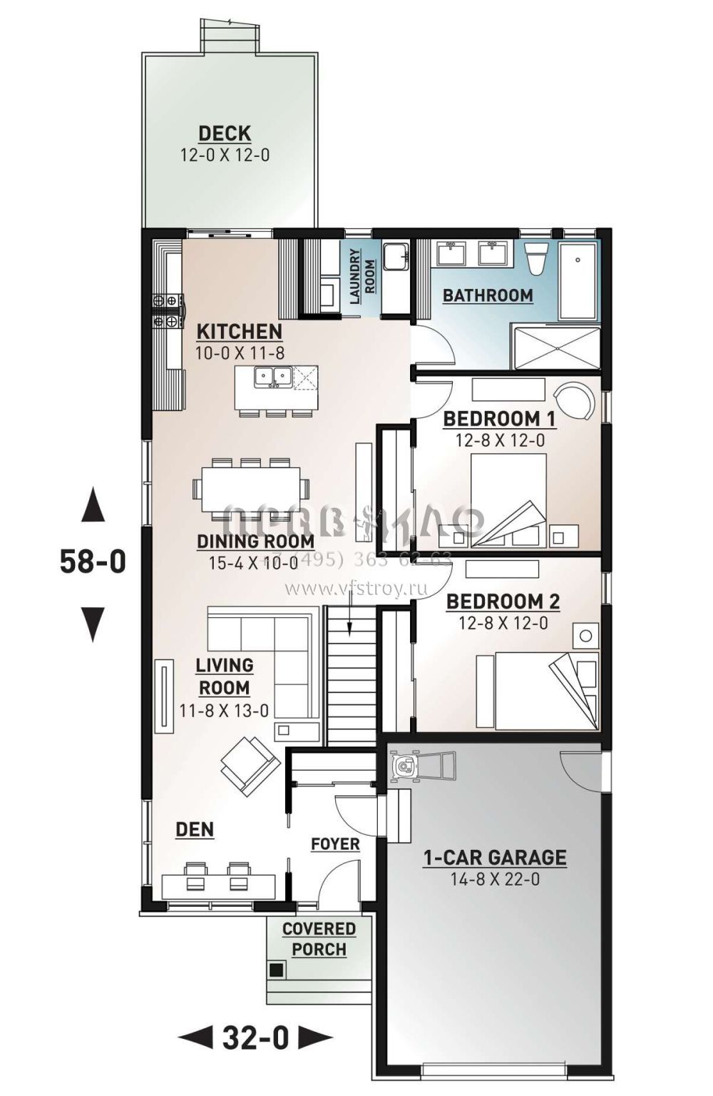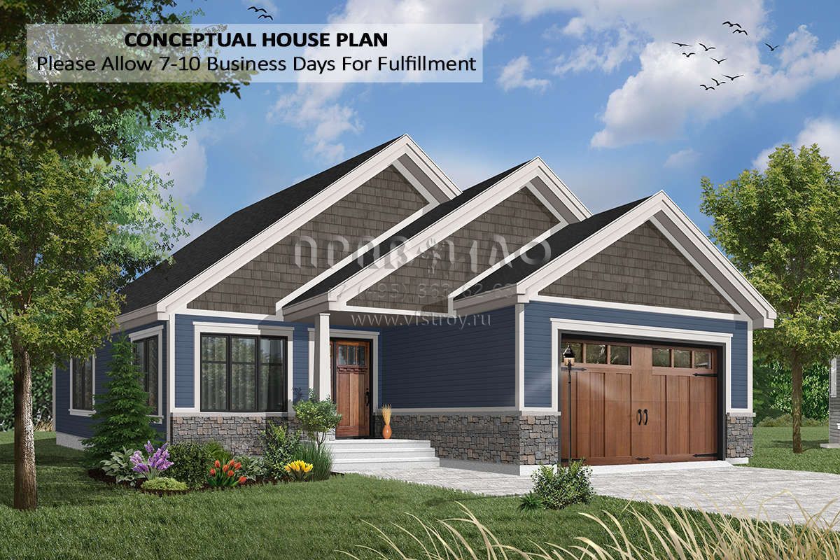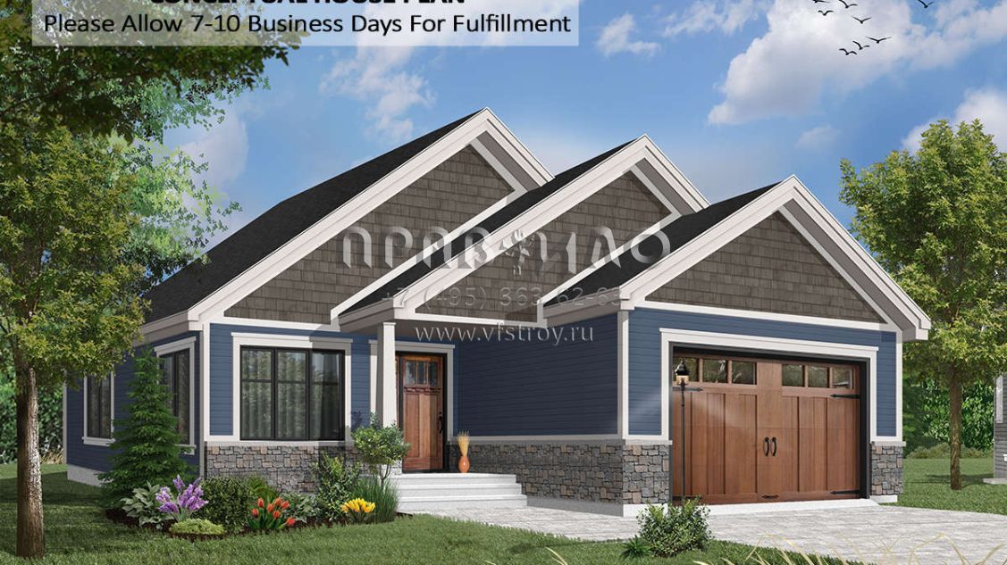 Проект одноэтажного дома с гаражом на одну машину в американском стиле S5-122 (034-01212)