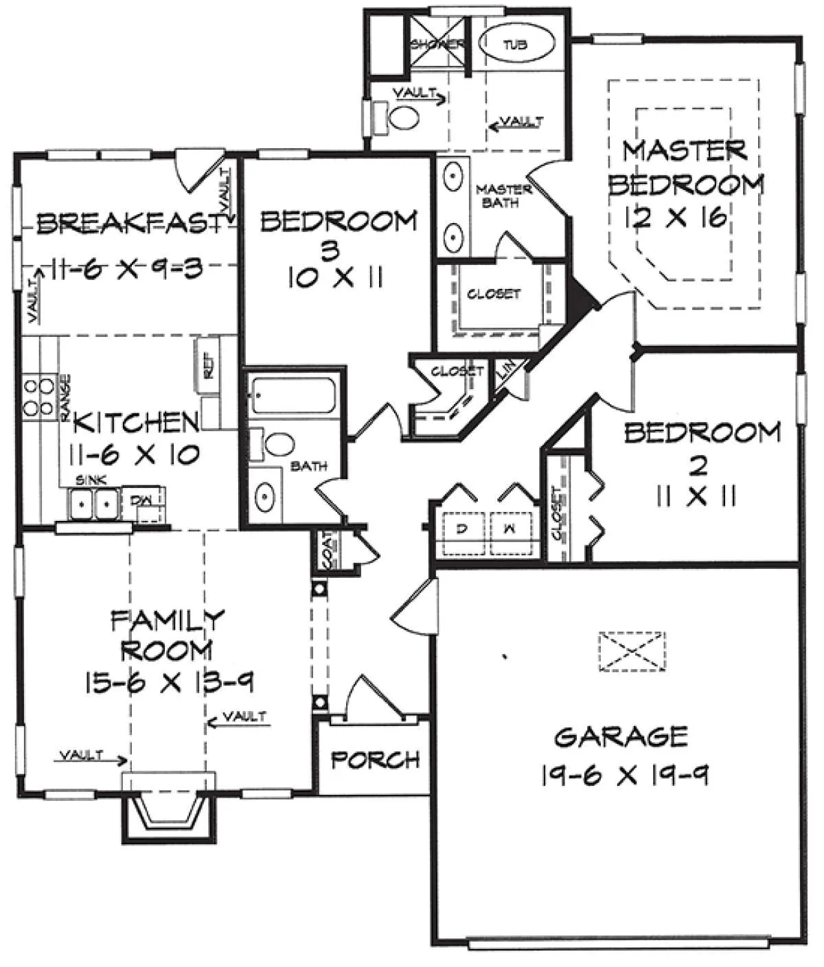 Проект одноэтажного дома с гаражом на две машины в стиле Ранчо S5-122 (6082-00059)
