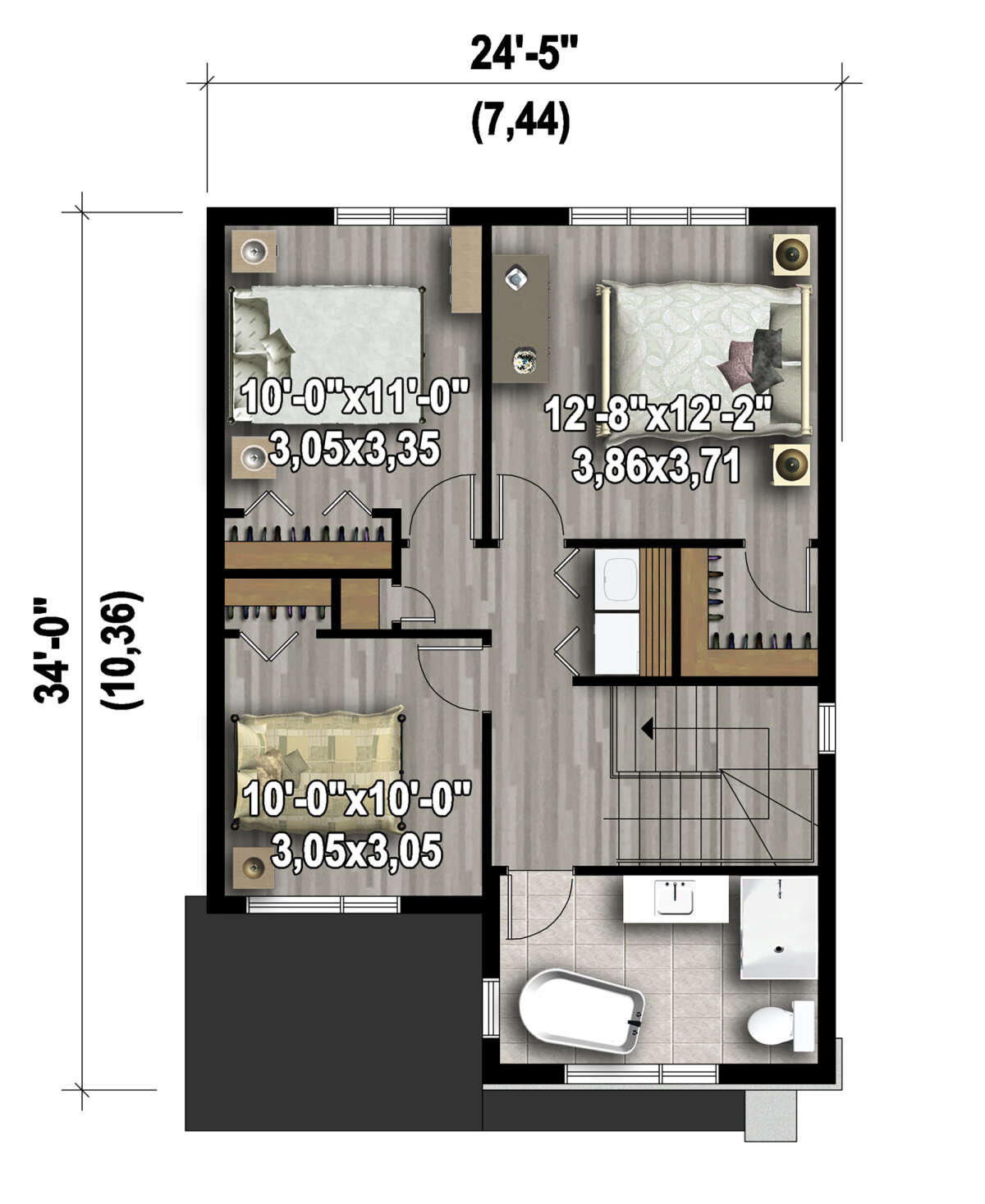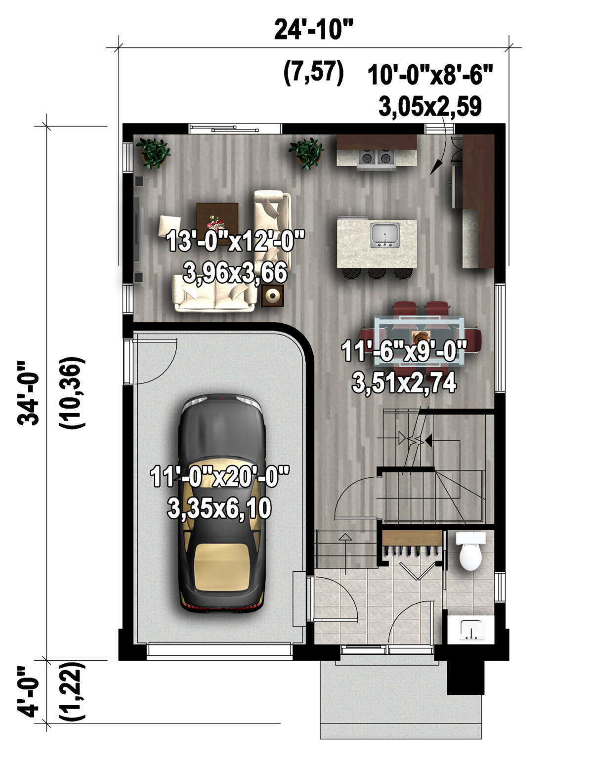 Проект двухэтажного дома с гаражом на одну машину в современном стиле S5-122 (6146-00393)