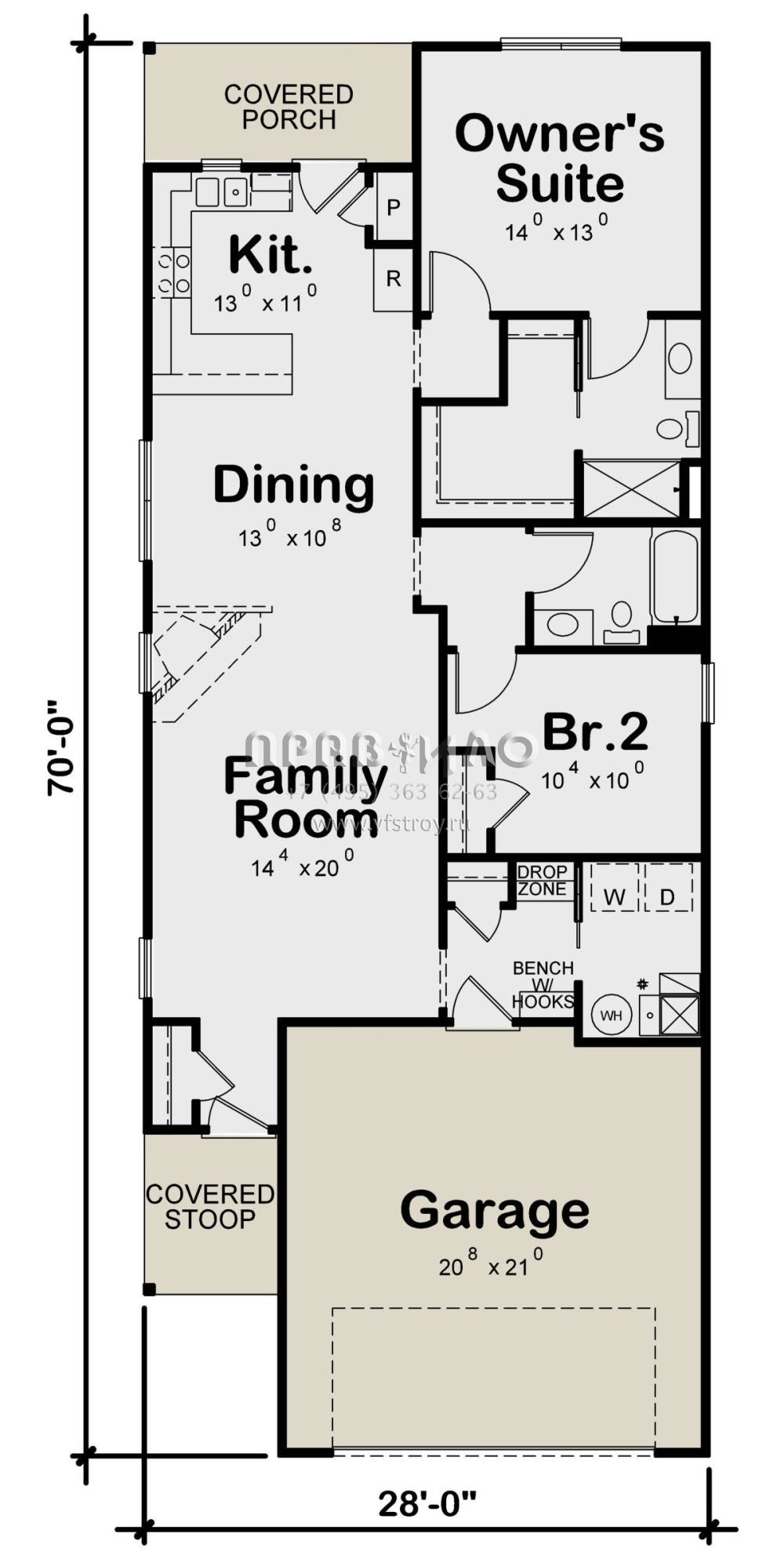 Проект одноэтажного дома с гаражом на две машины в стиле Ранчо S5-123 (402-01593)